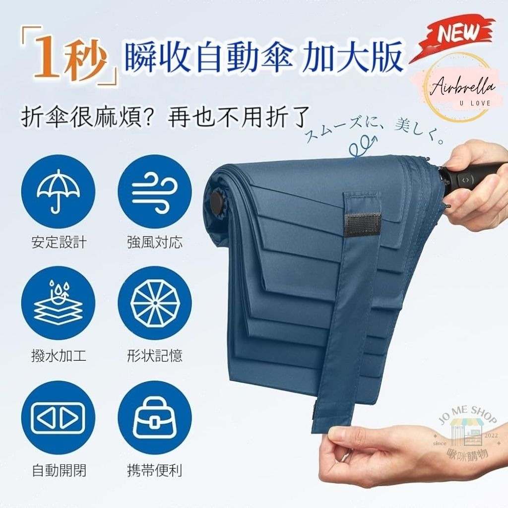日本【1秒 瞬收 自動傘】加大 雙人傘 防風 抗翻 防曬 抗UV 記憶傘布 摺疊傘 8骨 旅行