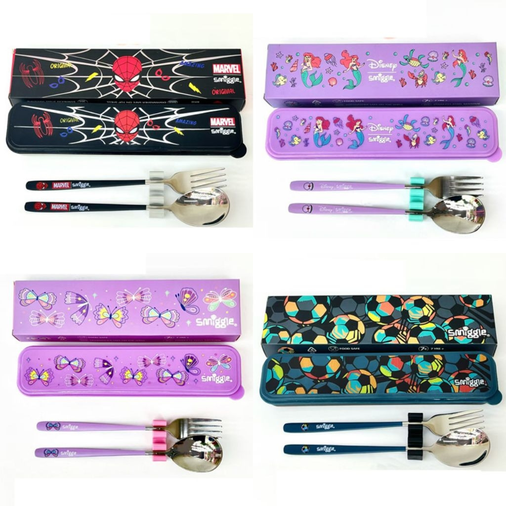 澳洲 smiggle 304 不銹鋼 蜘蛛人 美人魚 餐具 中小學生 叉子 兒童 卡通 湯匙 盒裝 午餐 勺叉 套餐