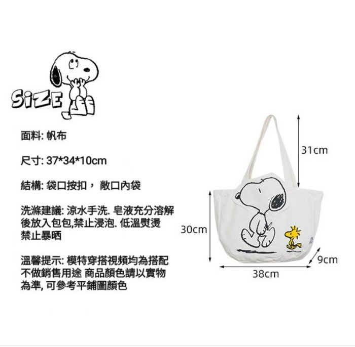 現貨當天出🐾官方✨️正版✨️Snoopy 史努比 卡通大容量 帆布袋 包包 女 ins 單肩包 (領券免運) 10%回饋