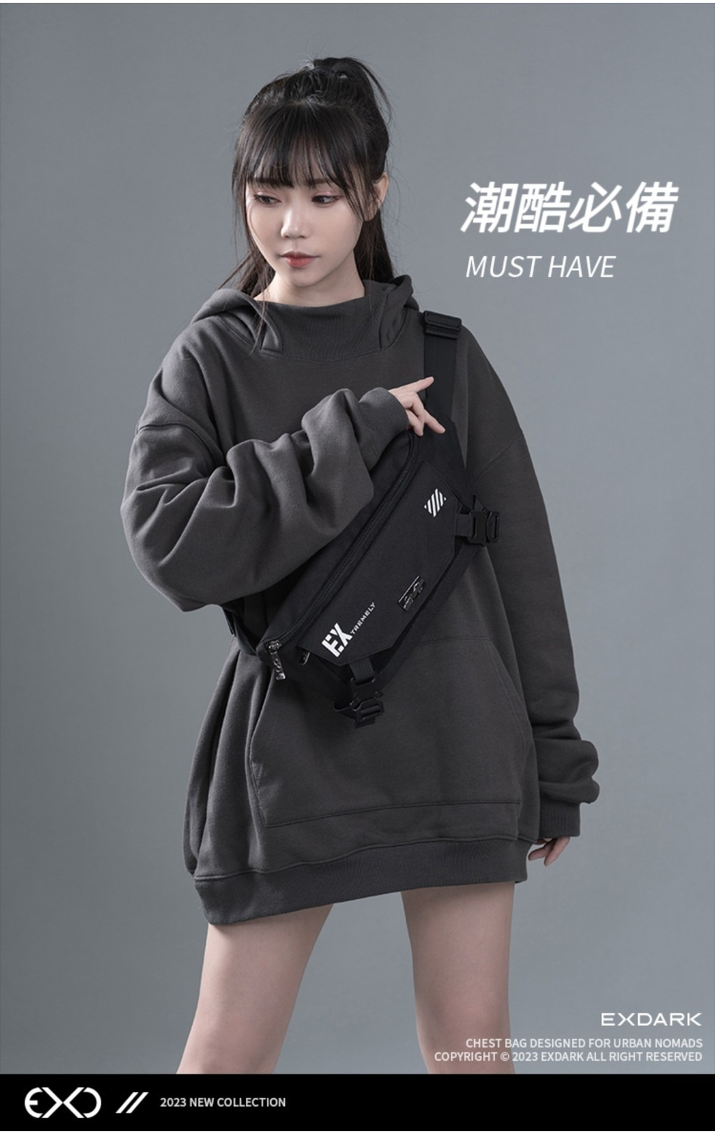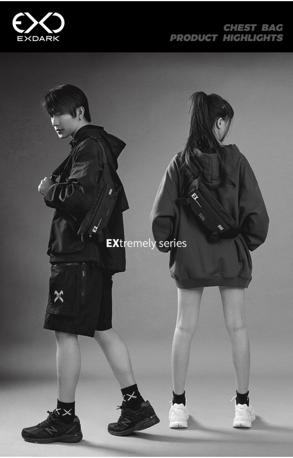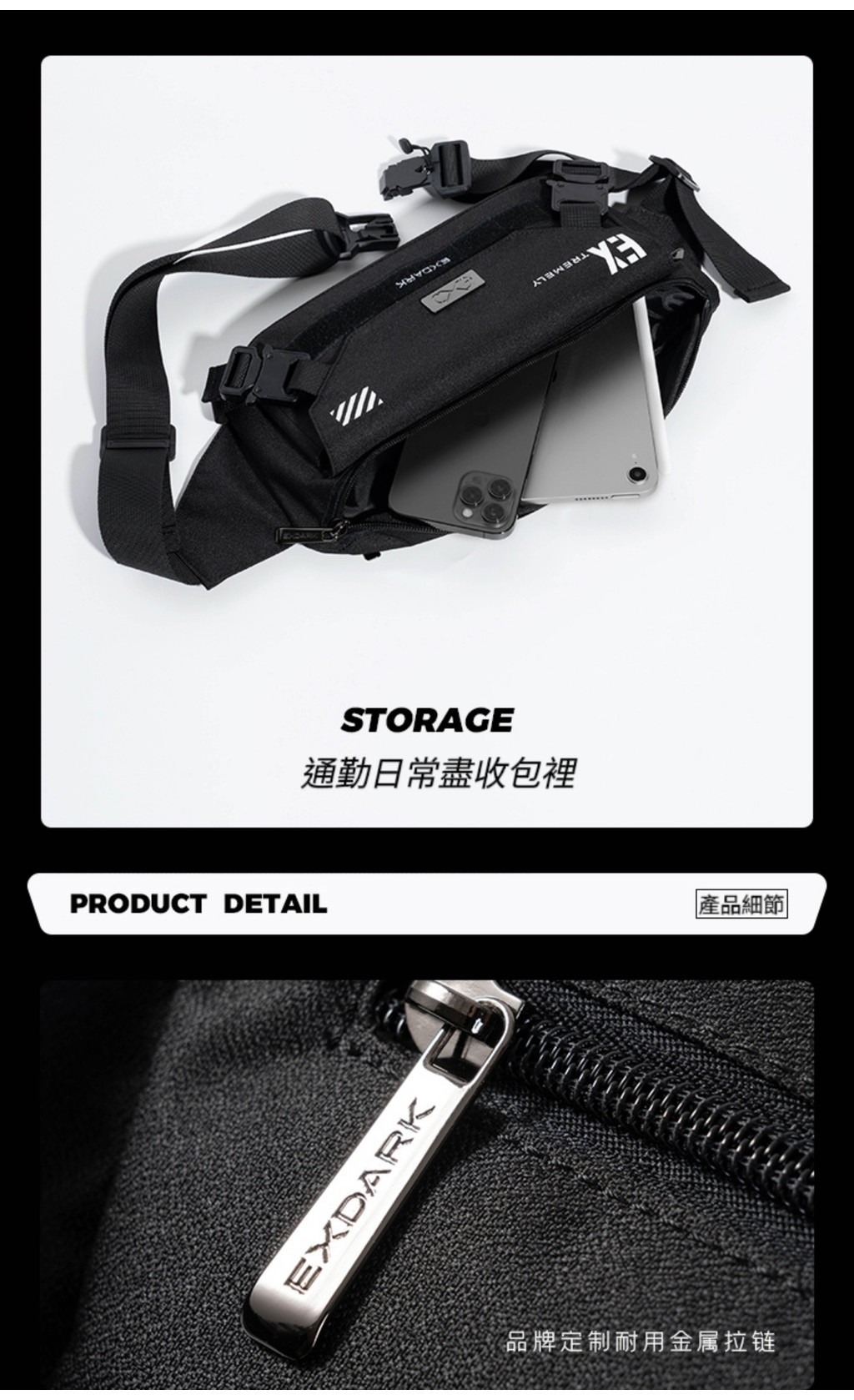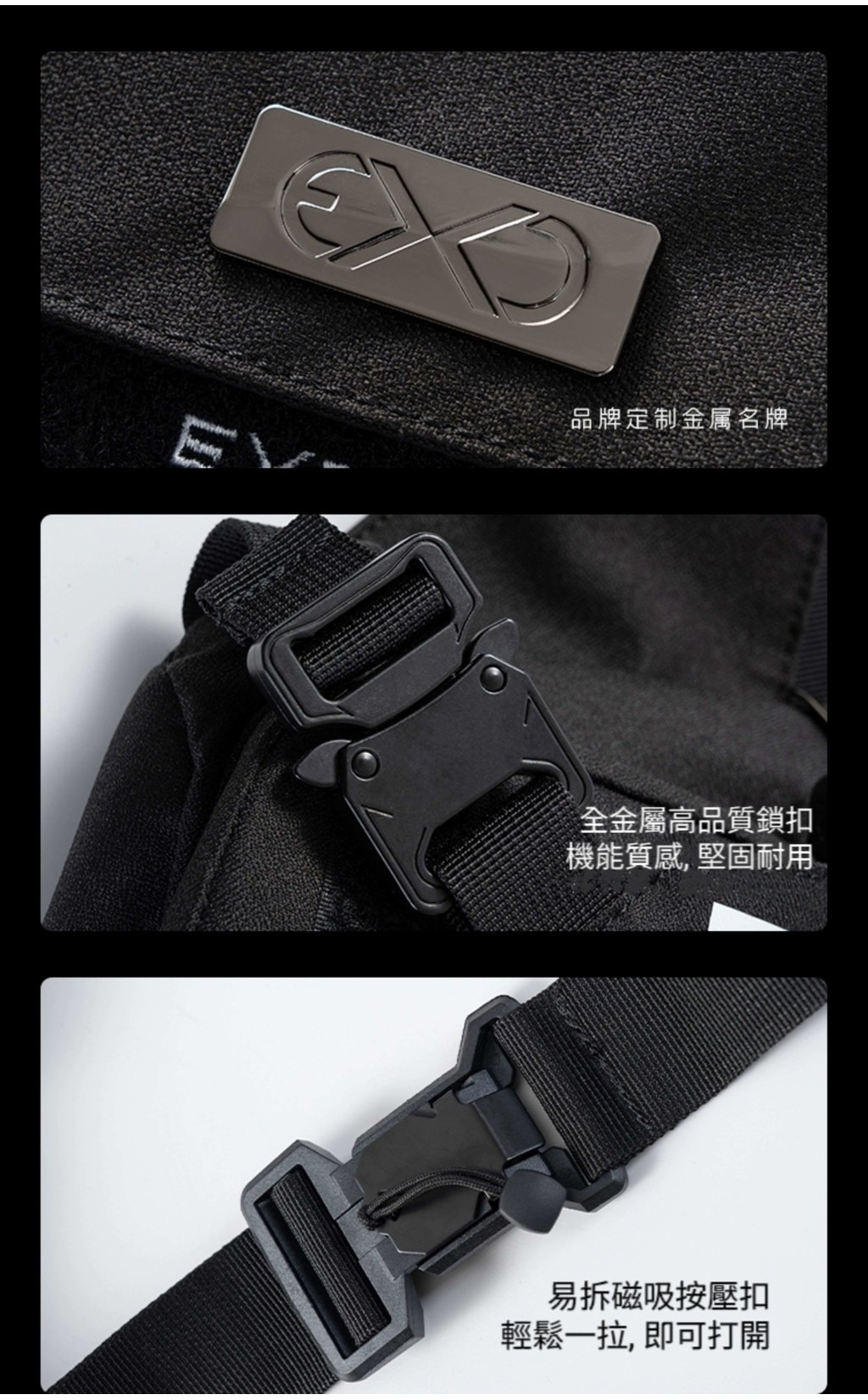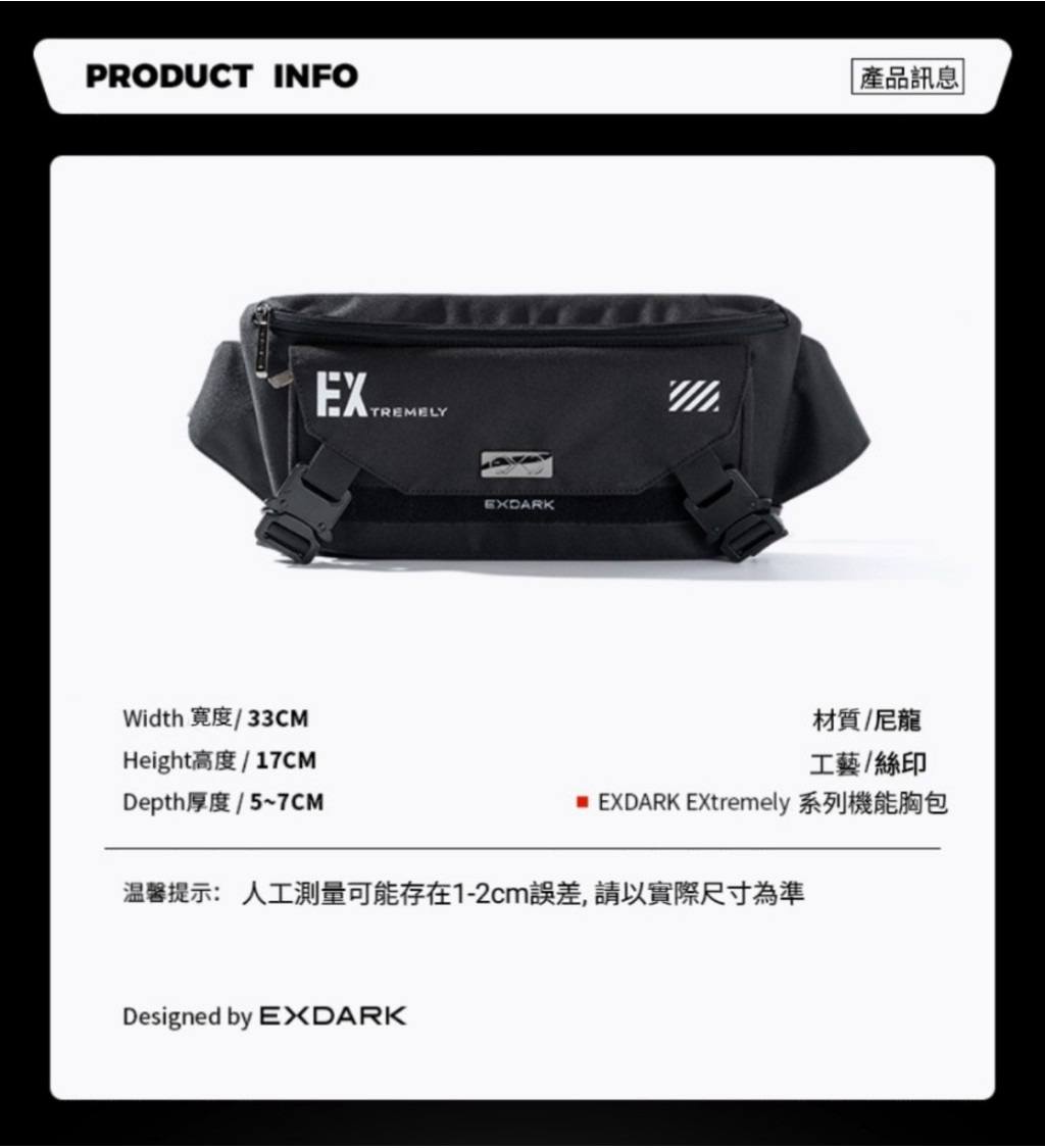 現貨🔳 🔘 EXDARK 黑色機能 新品 機能風 韓款🇰🇷胸包 EX系列 磁吸扣 多功能 收納 尼龍胸包