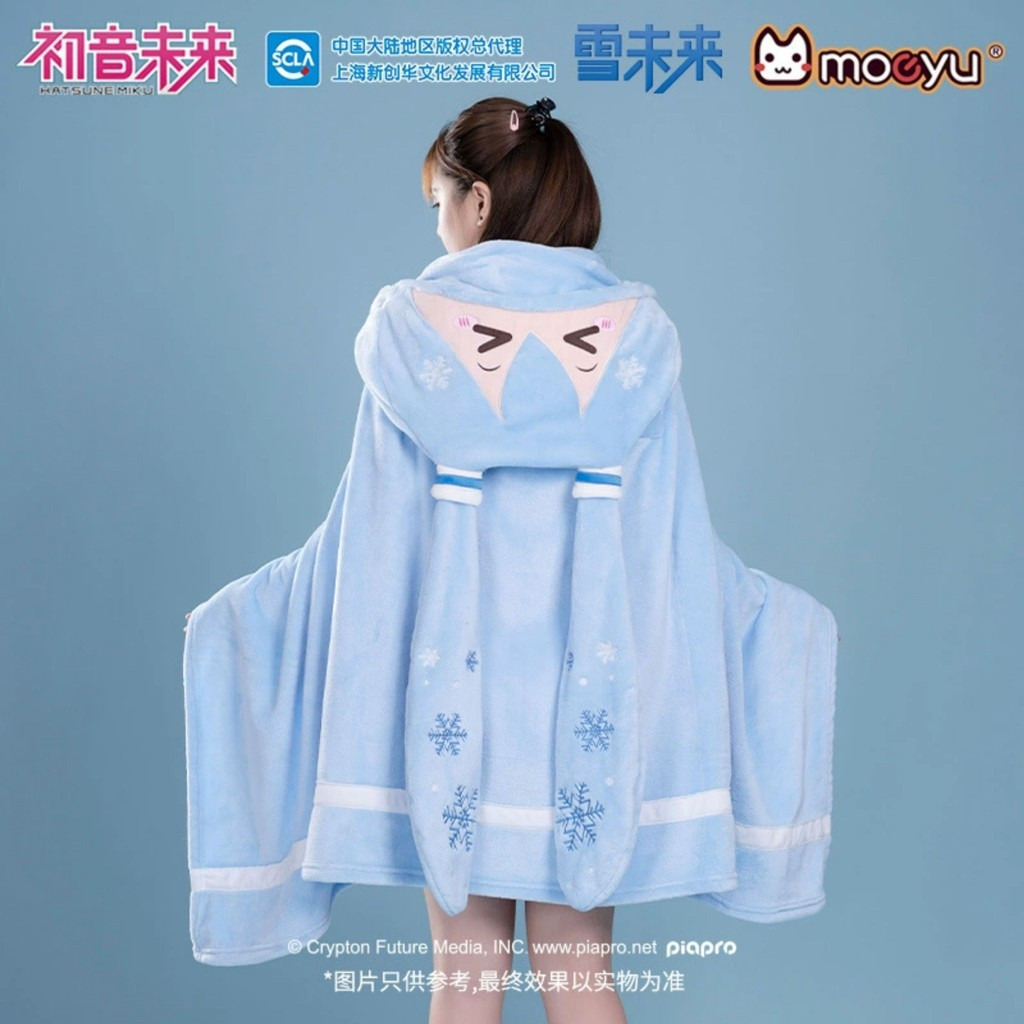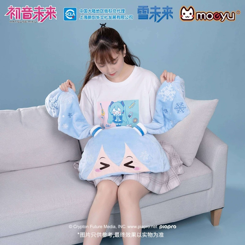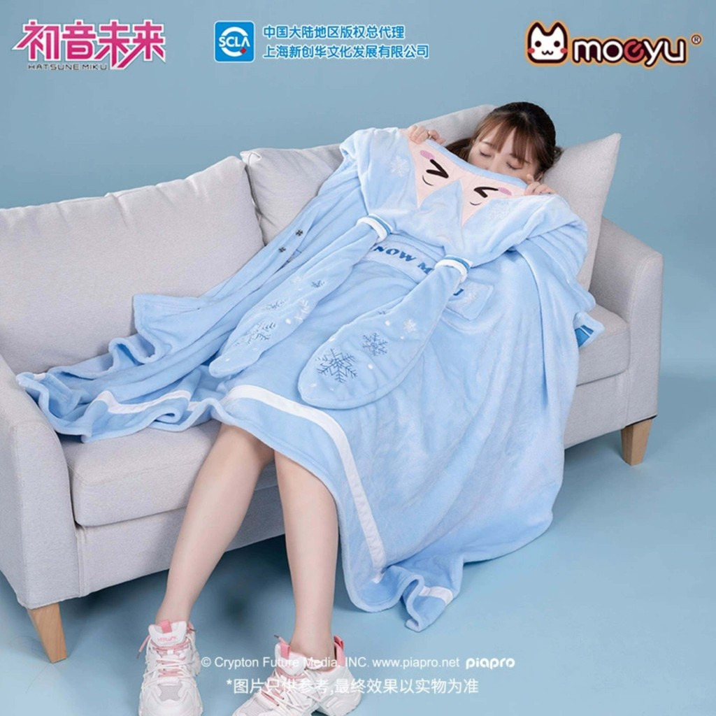 Moeyu 雪未來 瞇瞇眼系列 多功能連帽 空調毯 抱枕 保暖 法萊絨披肩