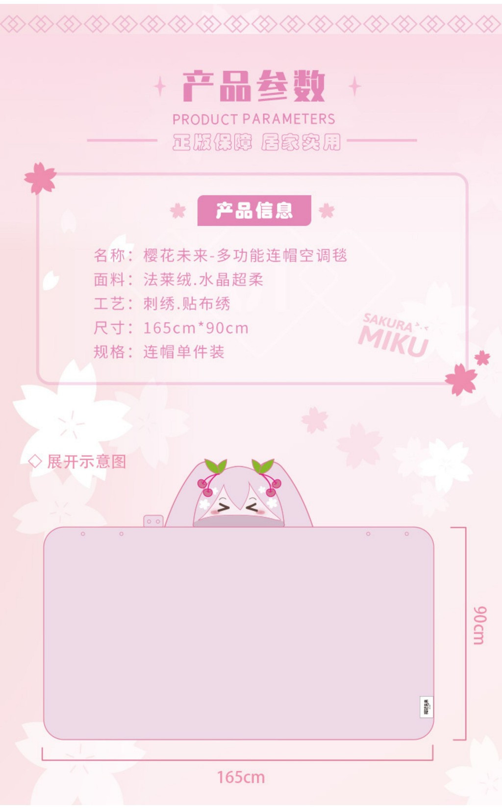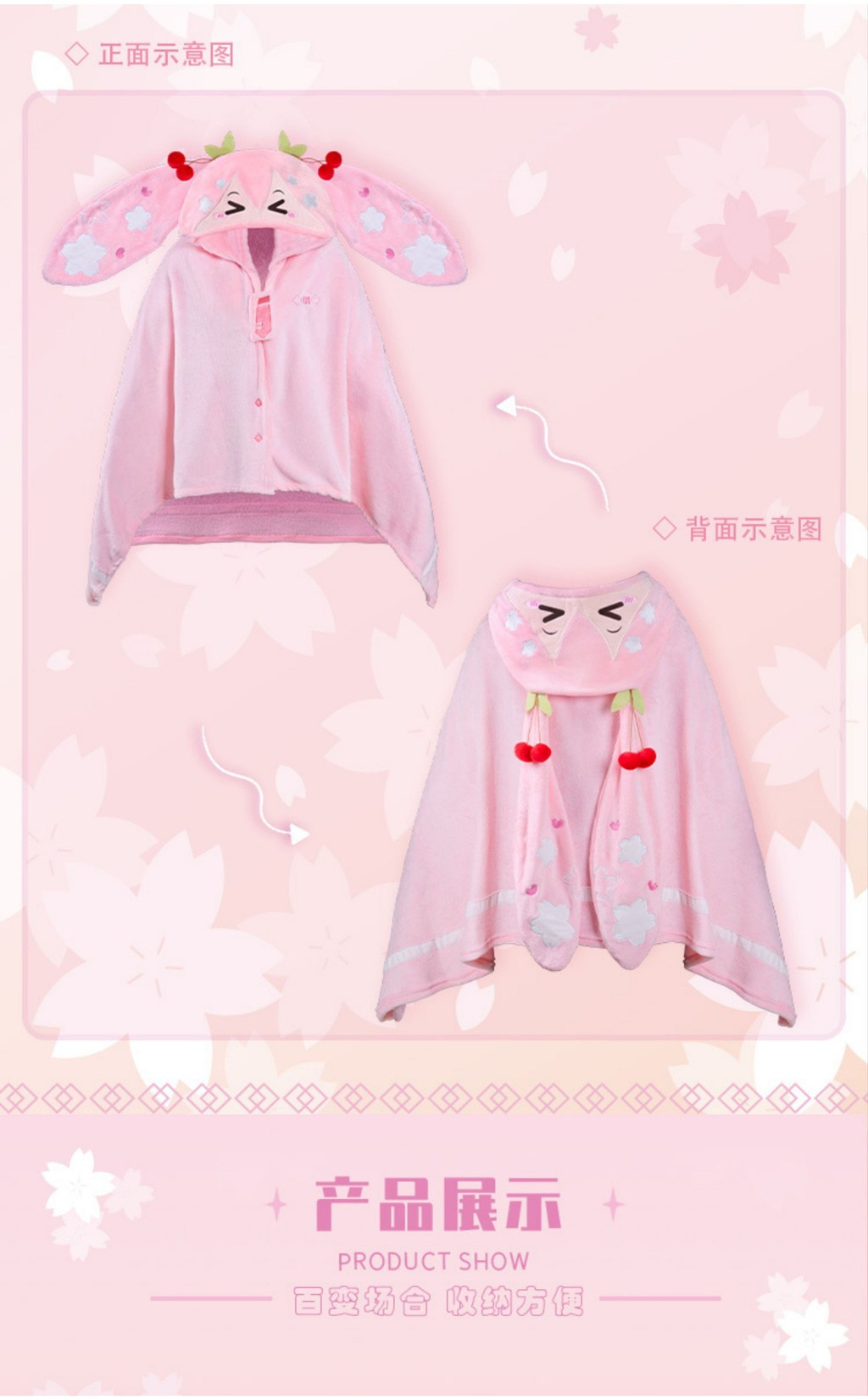 Moeyu 櫻花未來 瞇瞇眼系列 多功能 連帽 空調毯 抱枕保暖法萊絨披肩