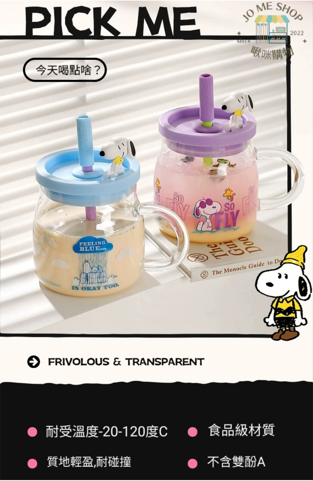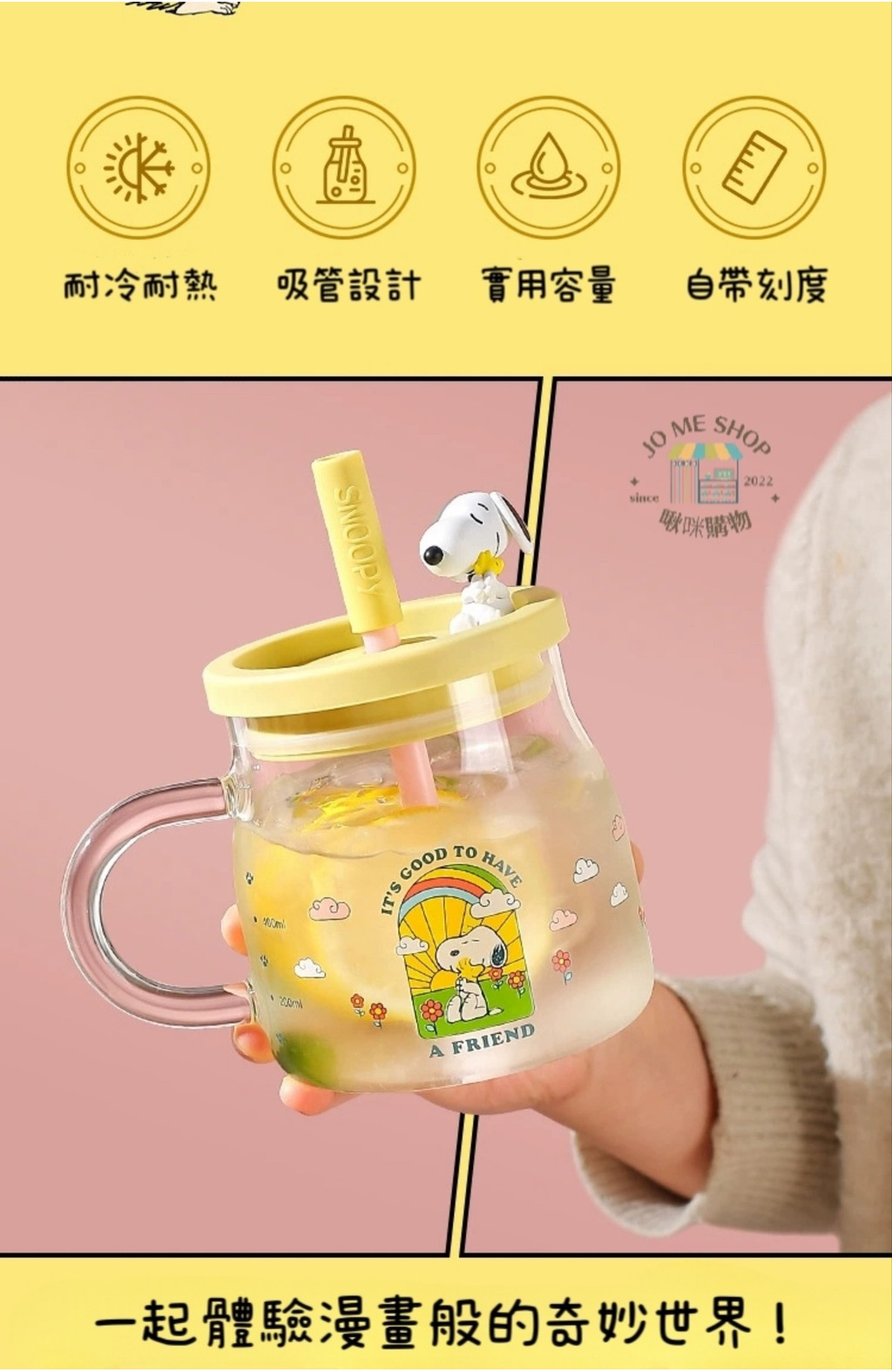 史努比 大容量 玻璃杯 女生 高顏值 家用 喝水杯 成人 耐高溫 吸管杯 牛奶杯