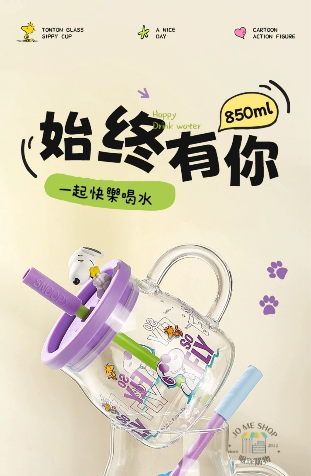 現貨 禮物 🐾官方✨️正版✨️Snoopy 史努比 850ml 大容量 公仔 玻璃杯 耐高溫 吸管杯 牛奶杯 奶茶杯
