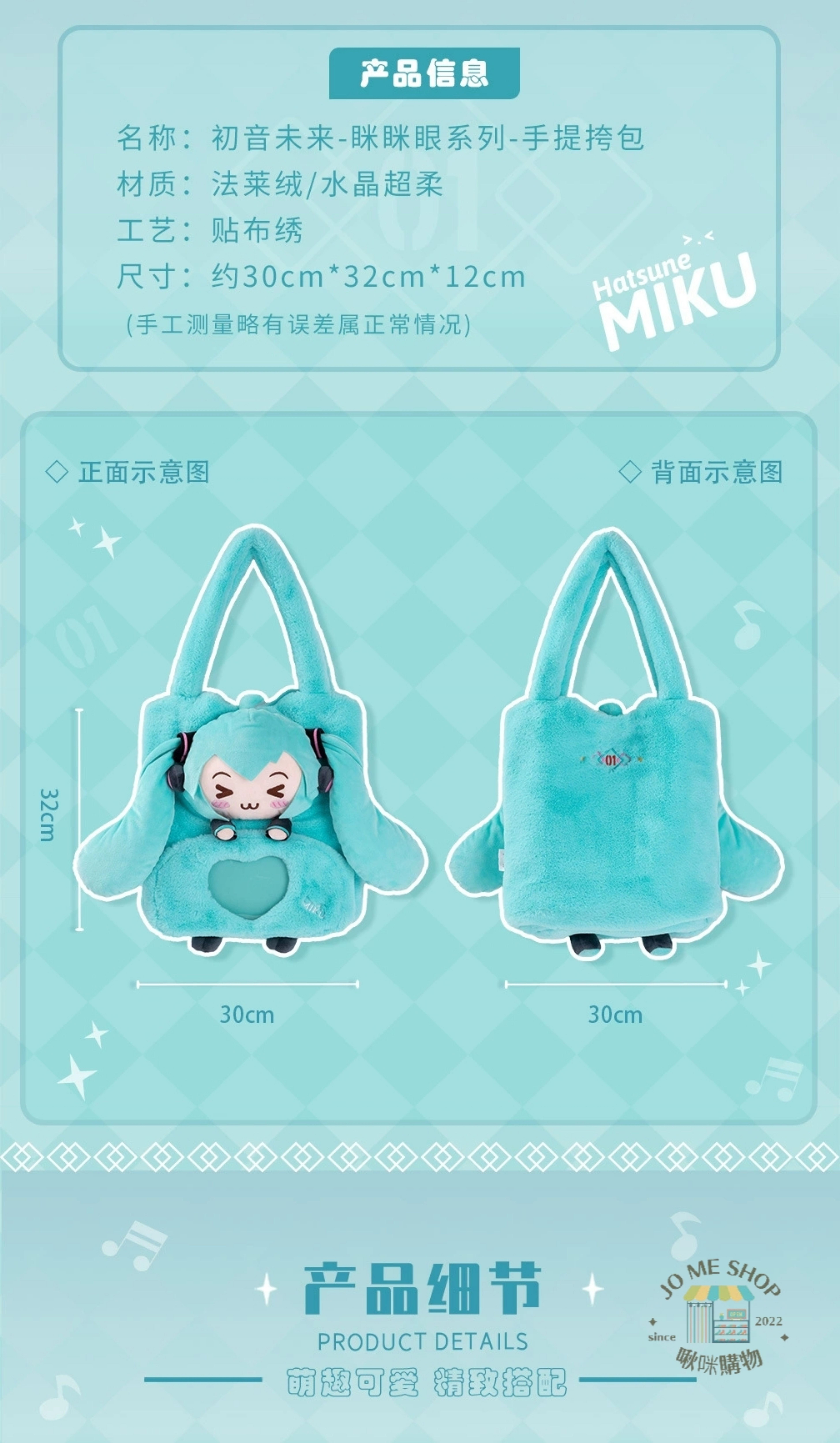 現貨 禮物 👘 官方授權 正品 Hatsune Miku 初音未來 初音 瞇瞇眼系列 毛絨 多用 單肩包