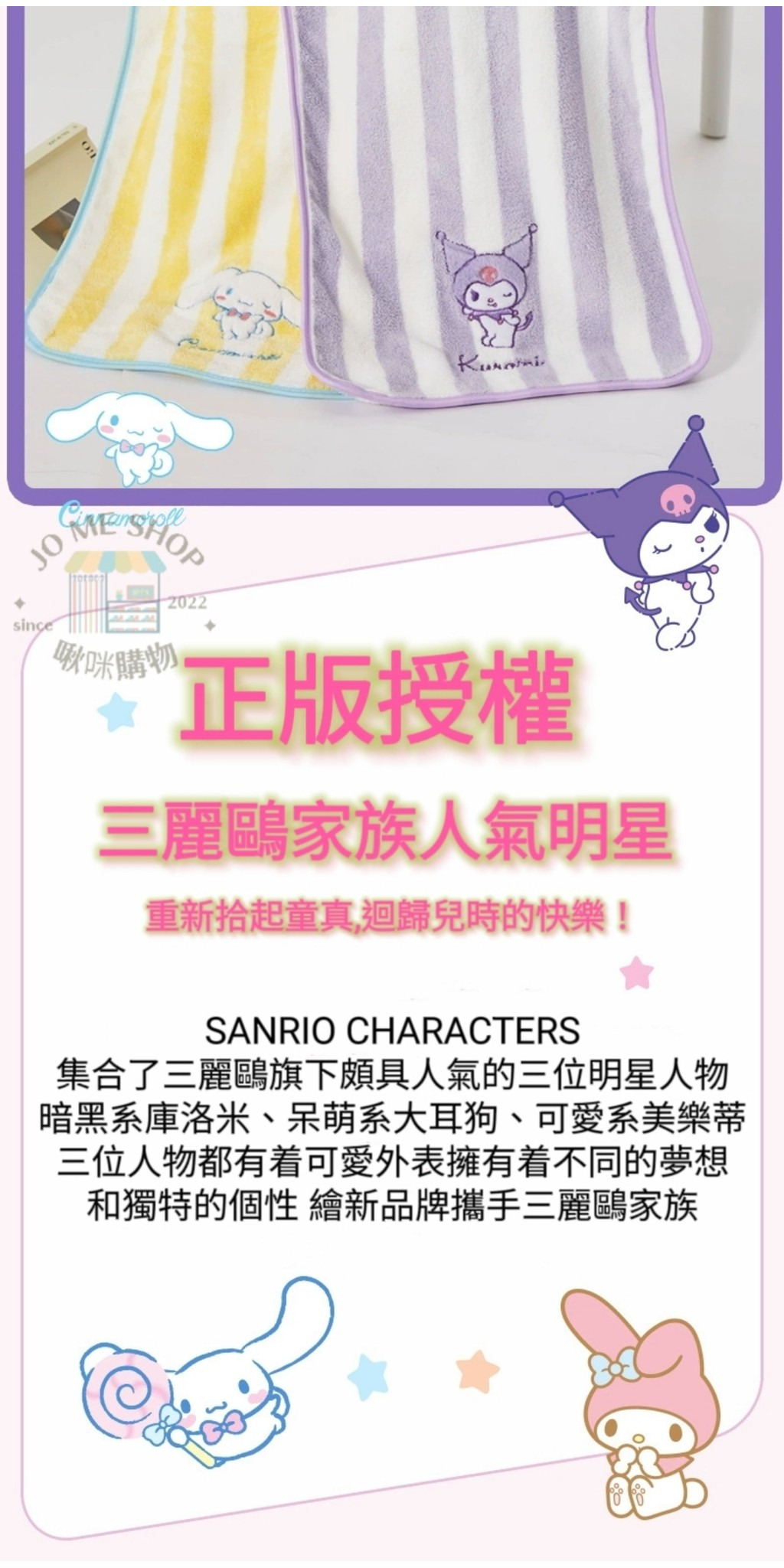 現貨 🪅三麗鷗 酷洛米 美樂蒂 大耳狗 條紋毛巾 可愛 美樂蒂 珊瑚絨 比純棉吸水 速乾 洗臉 方巾 擦頭 新款