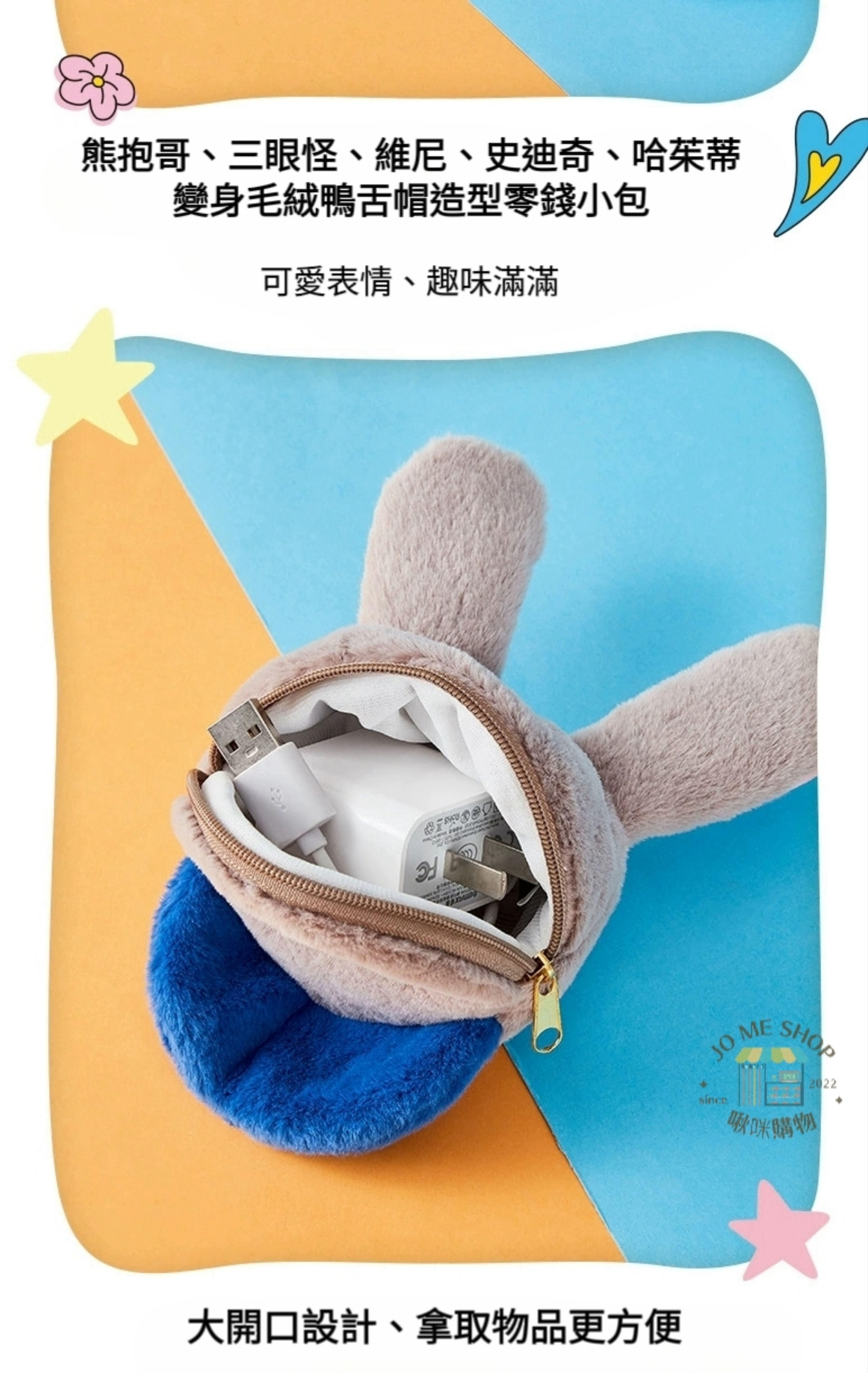 迪士尼 卡通 迷你鑰匙 口紅 收納 可愛 熊抱哥 三眼怪 毛絨帽子 鴨嘴帽 鑰匙扣 零錢包