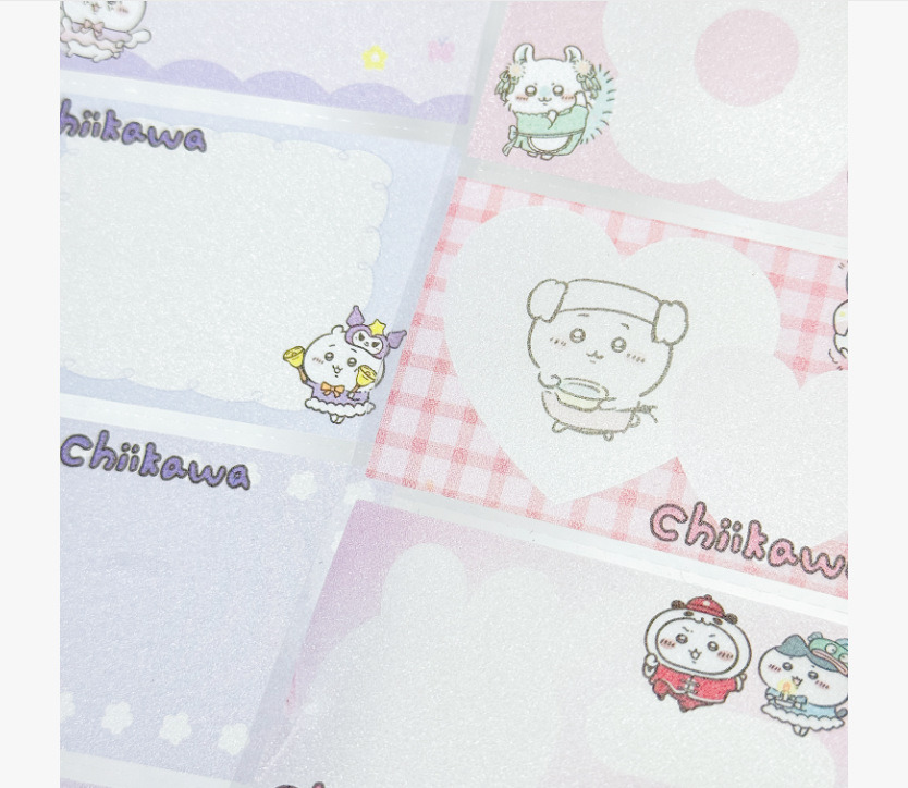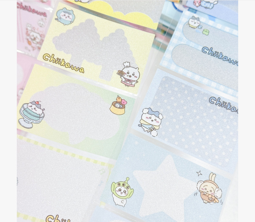 深受喜愛的「吉伊卡哇 (Chiikawa)」化身實用文具!這款便利貼採用獨特的珠光漸變設計,半透明質感在不同角度下閃耀迷人光澤。