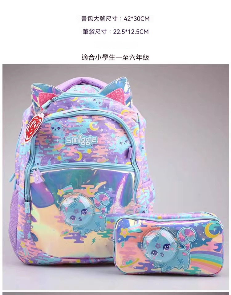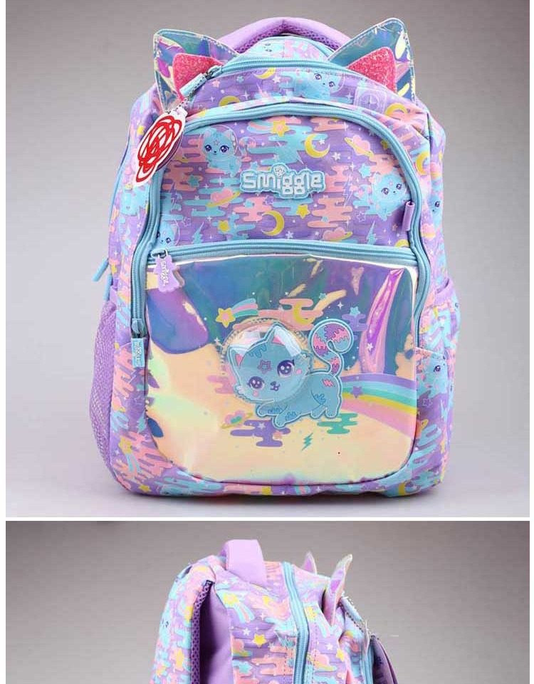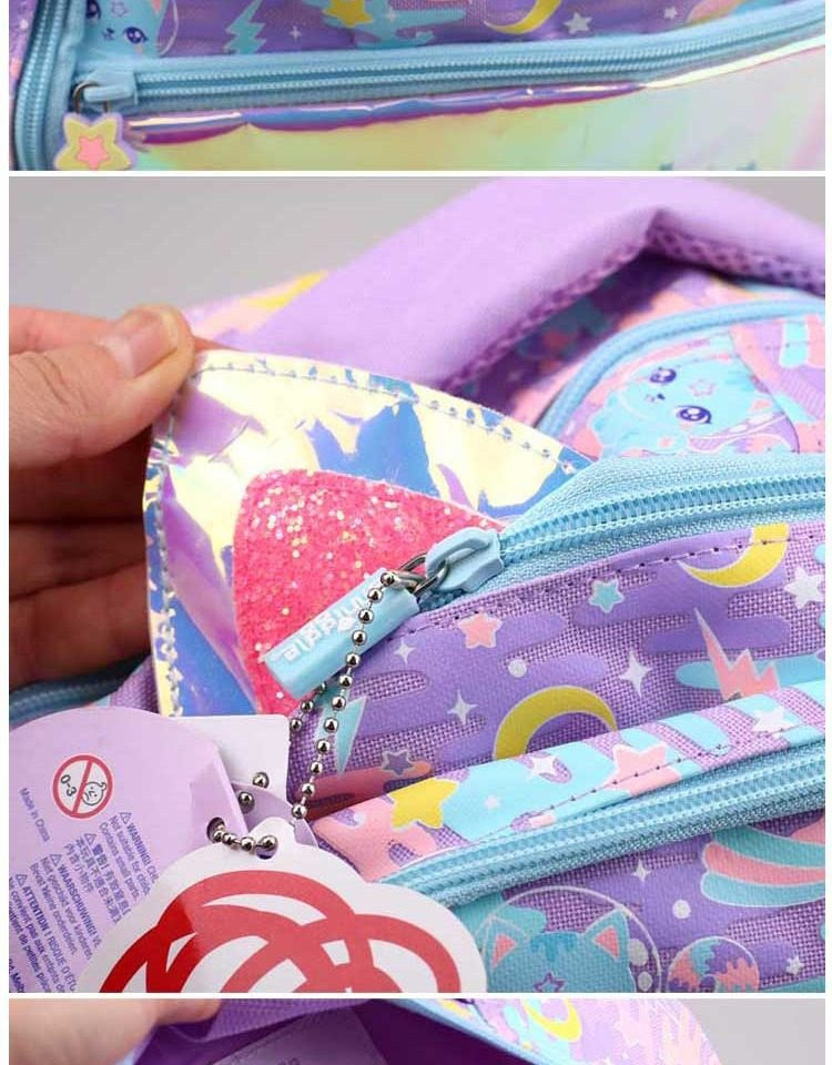 這款「銀色太空貓」雙肩書包擁有夢幻的炫彩折射外觀,搭配俏皮的立體貓耳設計,絕對讓孩子一秒愛上!