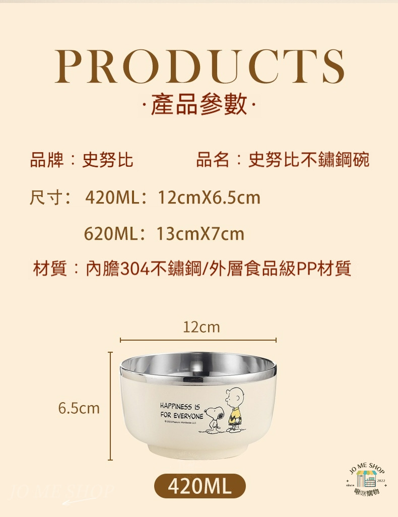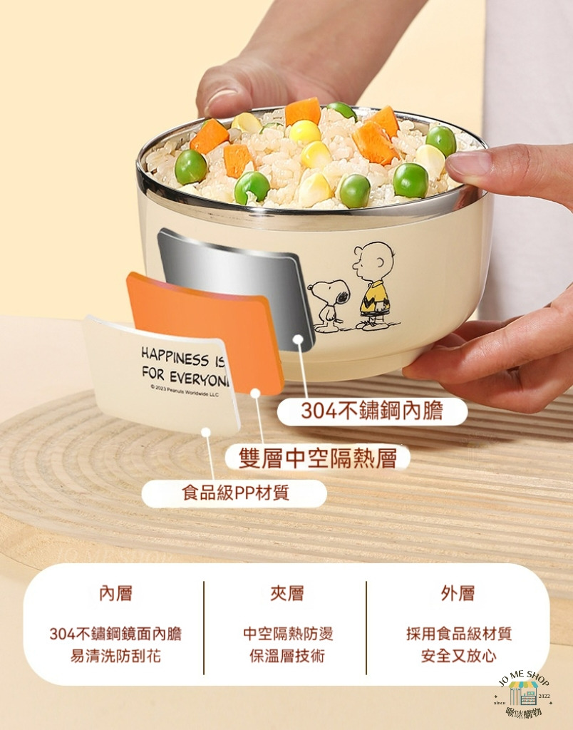 🥣 史努比 304 不鏽鋼雙層隔熱碗