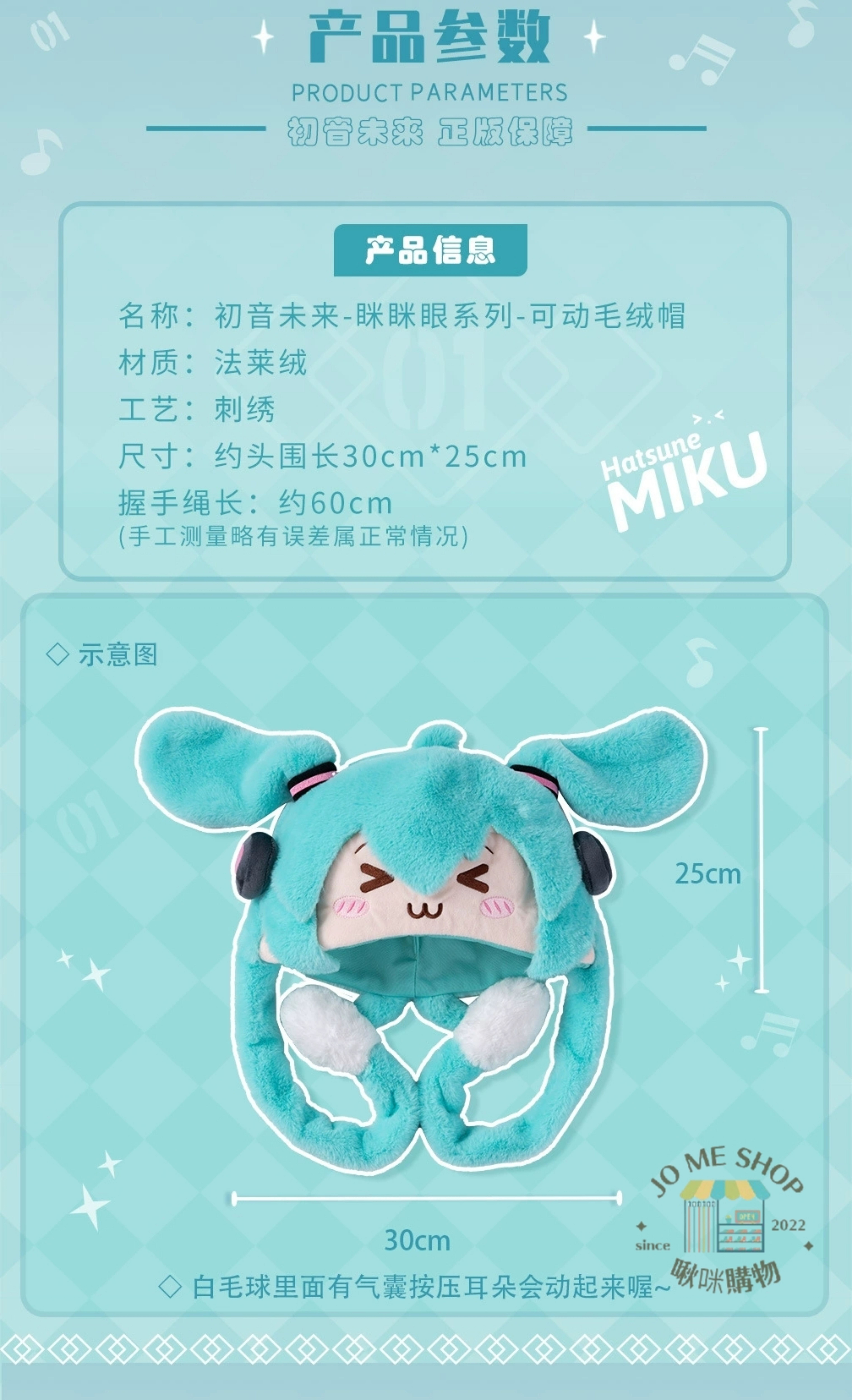 moeyu 初音未來 眯眯眼系列 可動毛絨帽