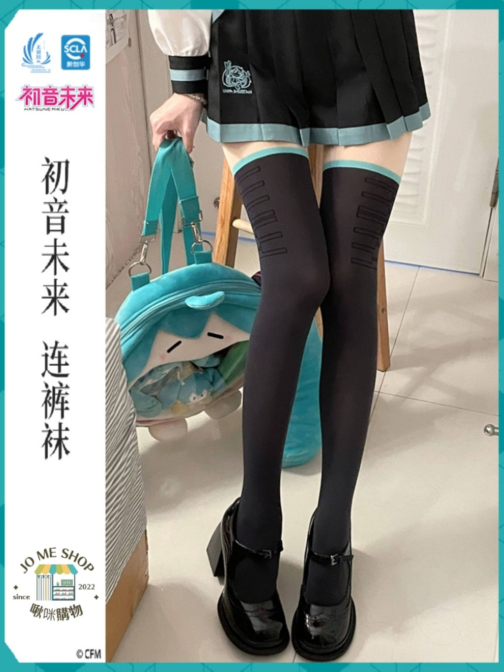 現貨當天出 👘 初音未來 天羽川 聯名 連褲襪 天鵝絨絲襪 假大腿 光腿 神器 假過膝 拼接襪