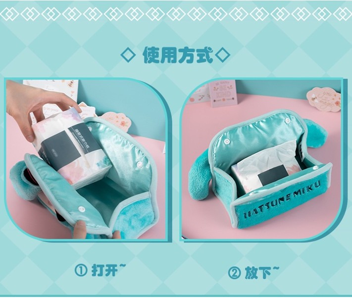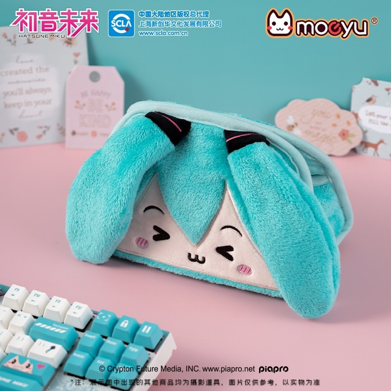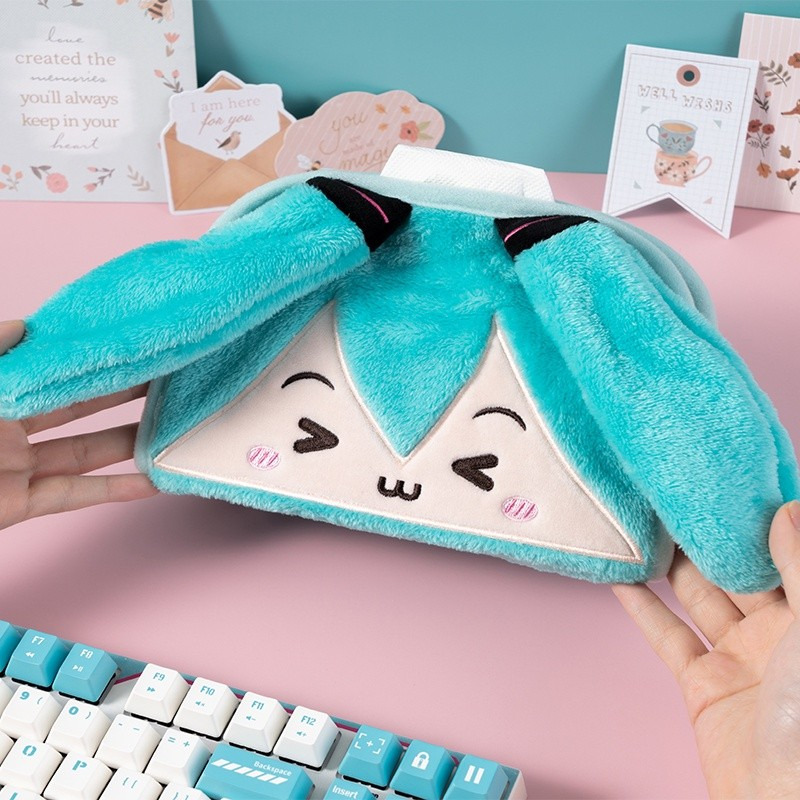 Moeyu 初音未來瞇瞇眼毛絨抽紙盒鈕扣開口miku可愛小巧紙巾盒