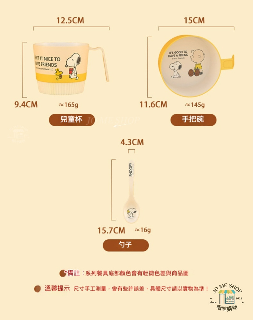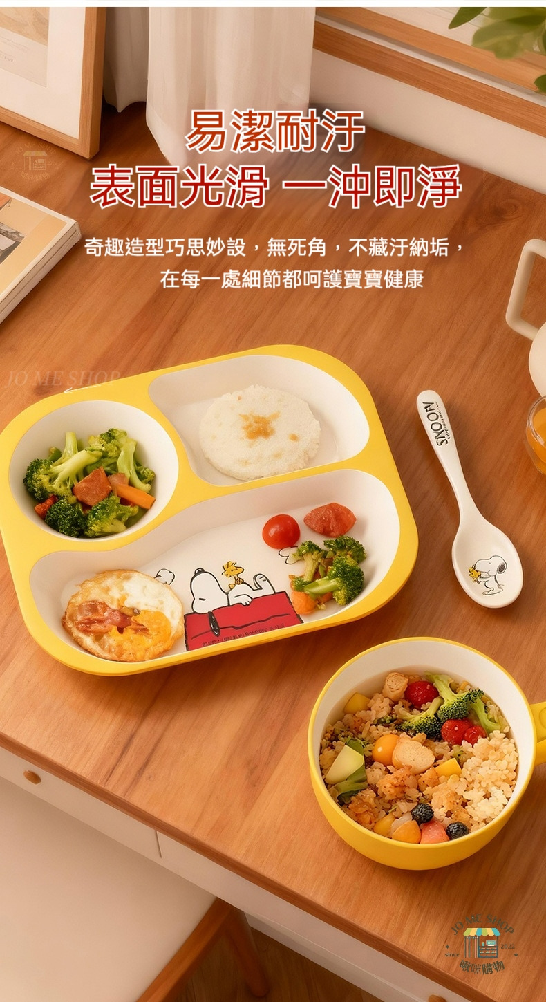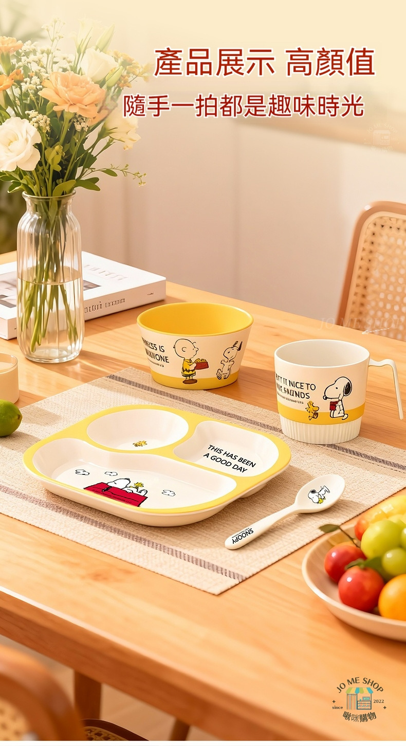 史努比黃白配色+壓花質感,可愛又耐看;分格餐盤不混味、加深容量更好盛,搭配好握手把碗/兒童杯/湯匙,從輔食到上學吃飯都超實用,送禮也很可以!