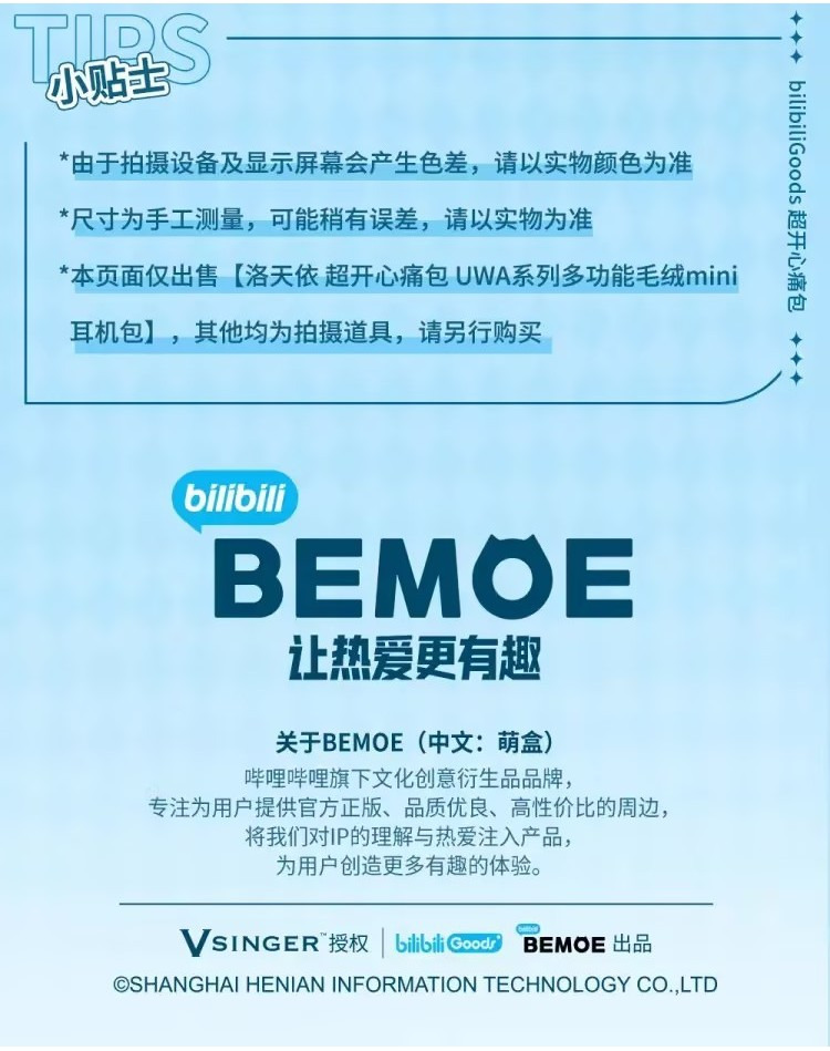 現貨 禮物 🎁 BEMOE B站 bilibiliGoods Vsinger 洛天依 超開心痛包 毛絨 耳機包