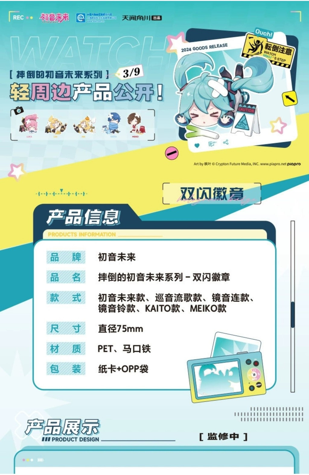 現貨 禮物 👘 官方授權 正版 Hatsune Miku 初音未來 天聞角川 摔倒的初音未來系列 雙閃徽章 摔倒的初音