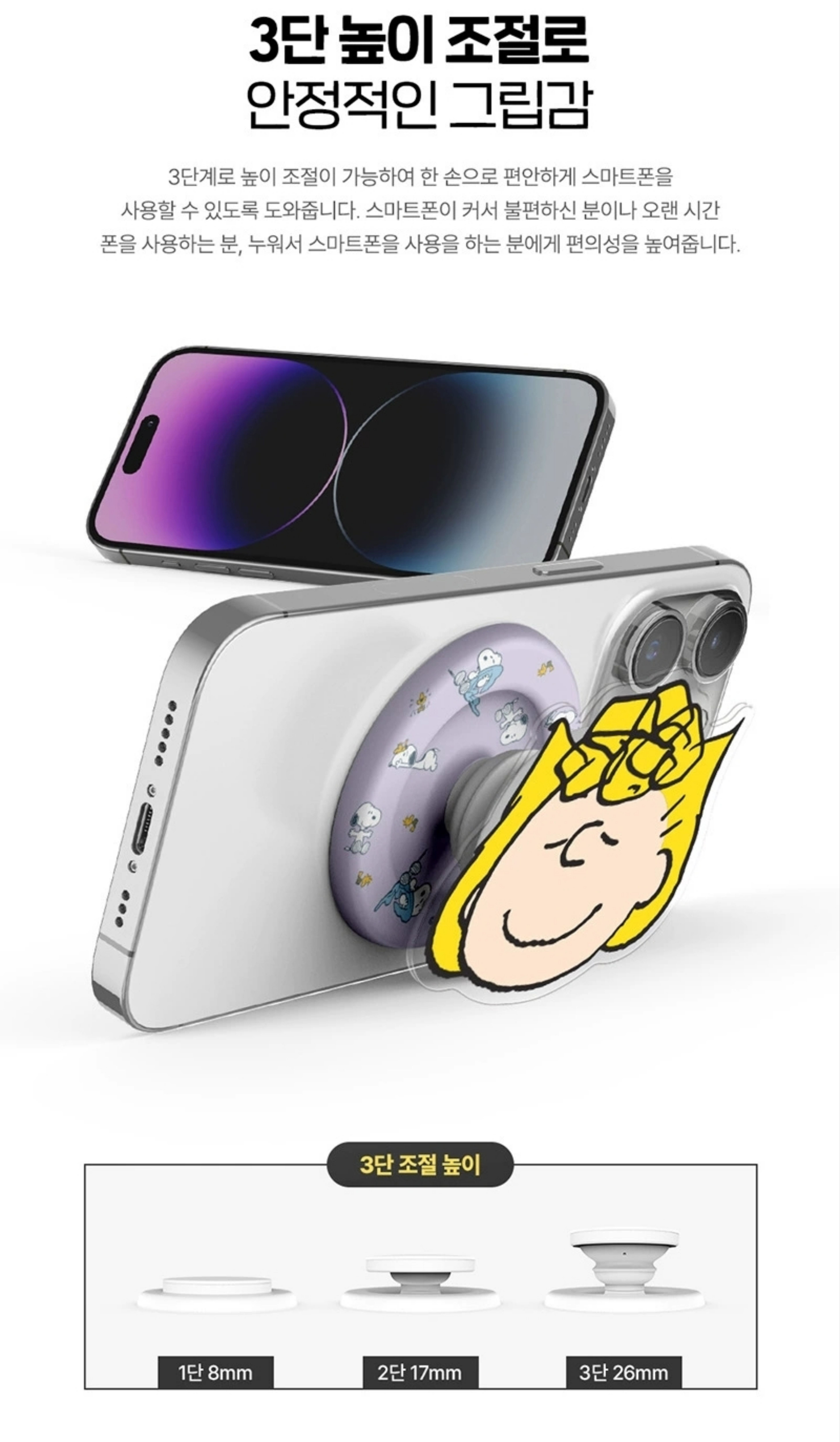 正版 韓國 史努比 磁吸 手機支架 蘋果 magsafe 磁吸 氣囊 支架 附伸縮 摺疊 桌面附贈DIY自黏磁鐵圈喔可自由安裝和拆卸舒適地使用您的智慧型手機MagSafe 相容磁性,非黏合劑固定依日常心情進行智慧對話更換、無線充電、自拍棒、車用支架、NFC等。各種使用環境均可分離使用,互不干擾。