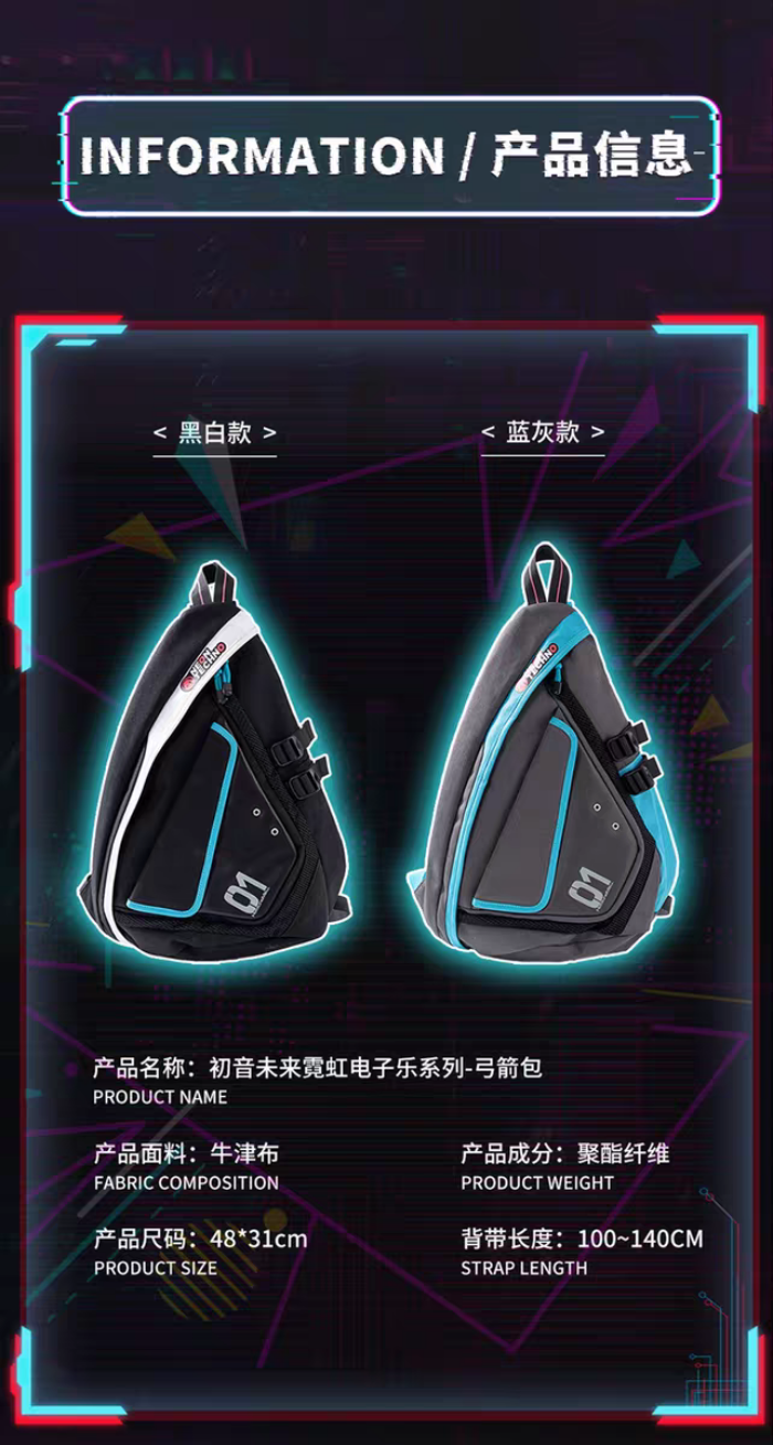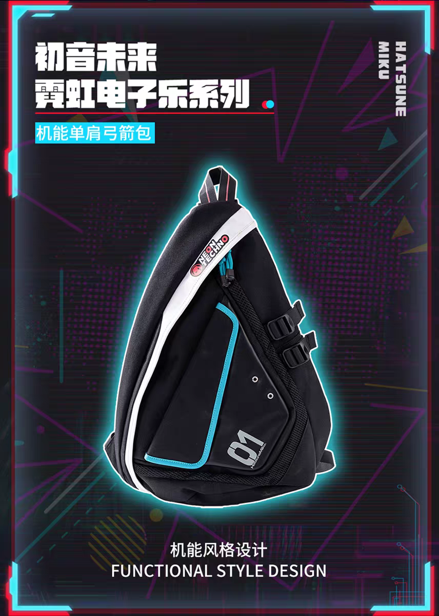 🎧 初音未來「霓虹電子樂」系列:機能風弓箭包
