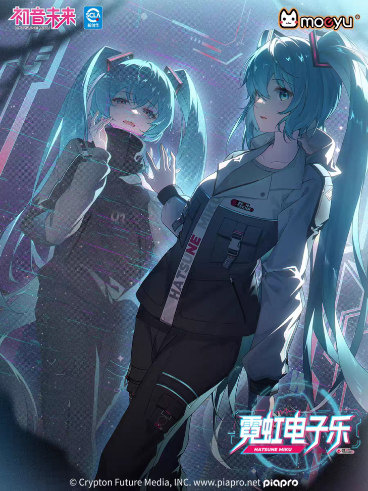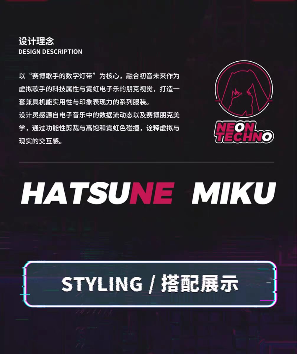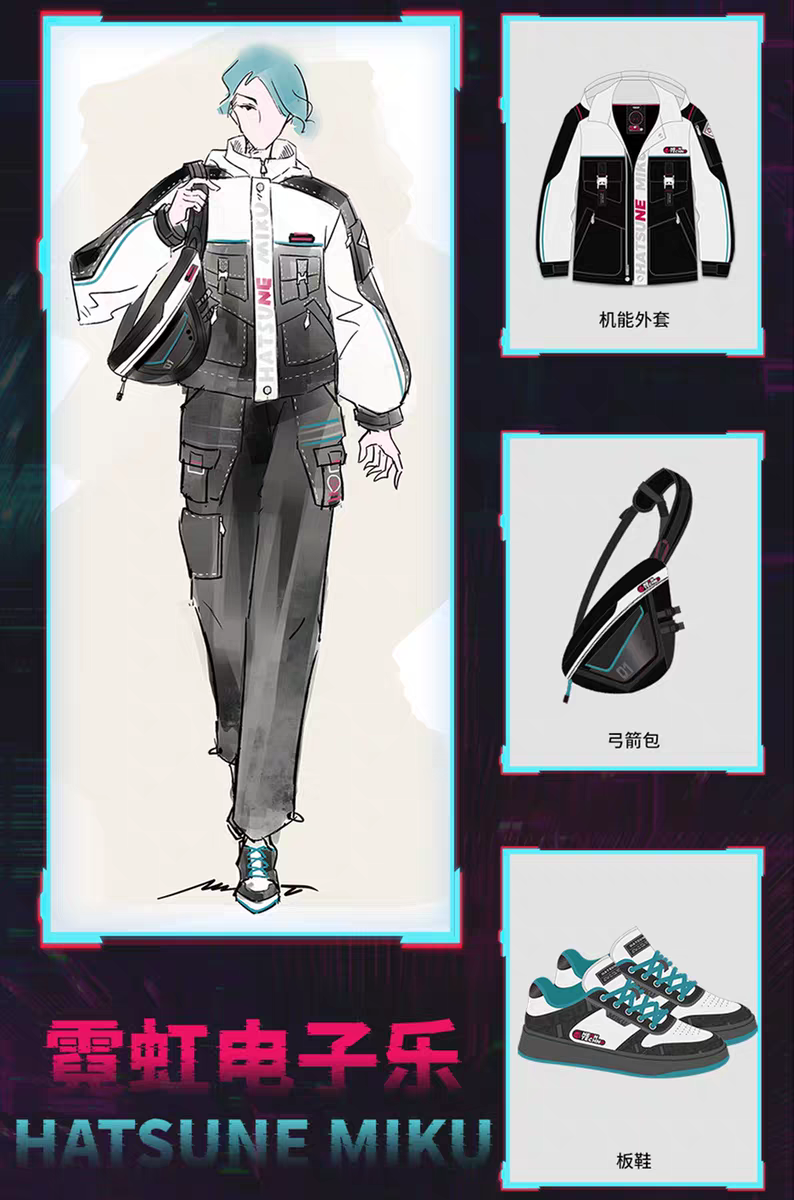 包身印有「霓虹電子樂」主題圖案與 Miku 相關編號元素。