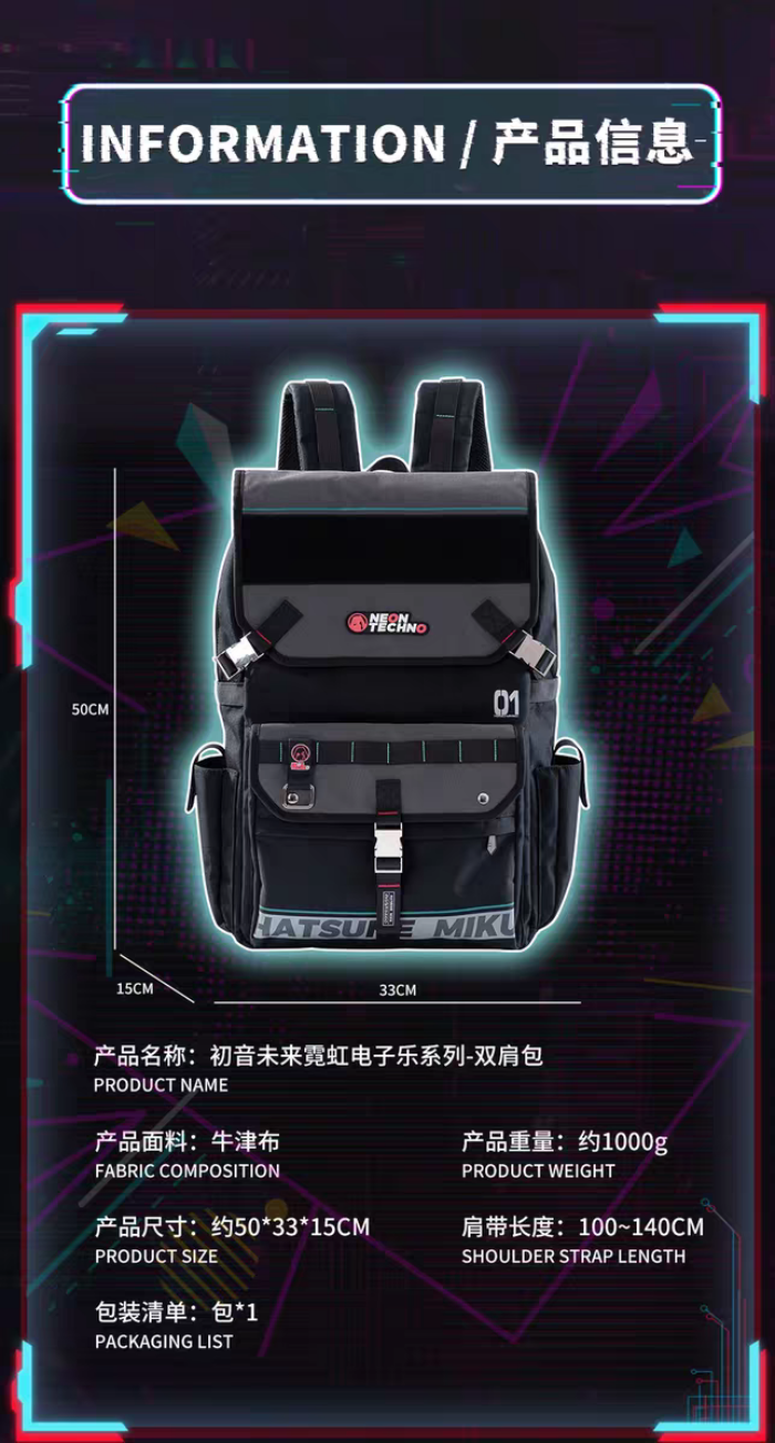 🎒 初音未來|霓虹電子樂機能風雙肩後背包(Hatsune Miku 聯名款)