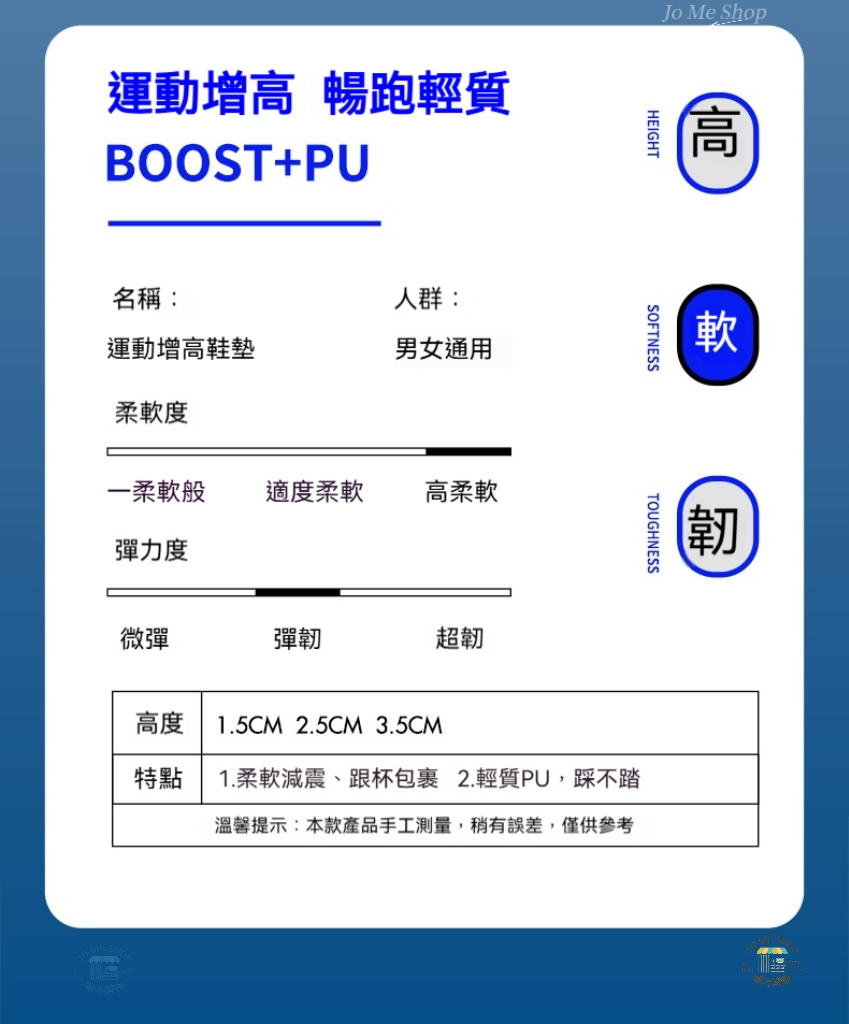 🏃‍♂️ BOOST+PU 運動增高鞋墊