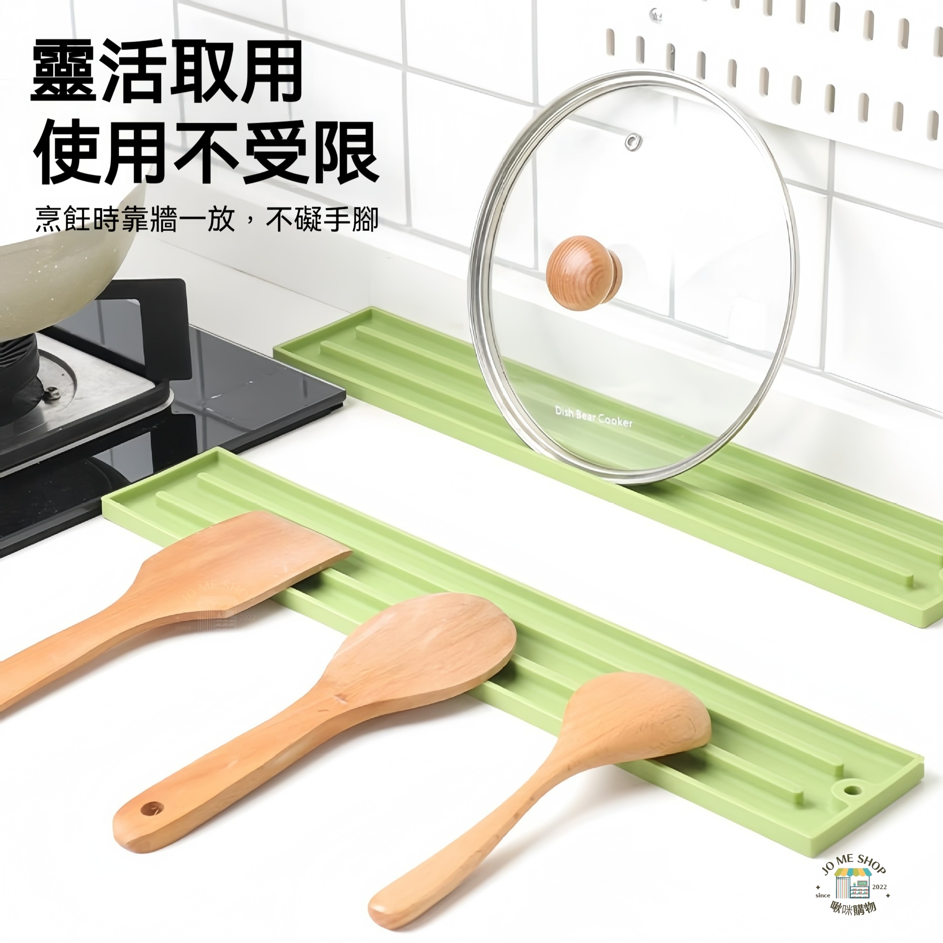 專為料理過程設計的多用途矽膠收納條,鍋蓋、湯匙、鏟子、料理工具都能隨手放好,保持檯面乾淨又整齊✨