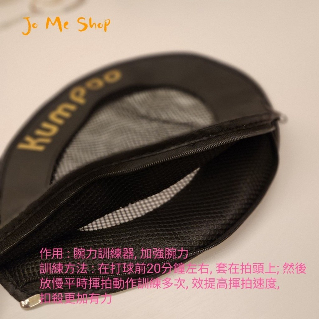 訓練方法 : 在打球前20分鐘左右, 套在拍頭上; 然後