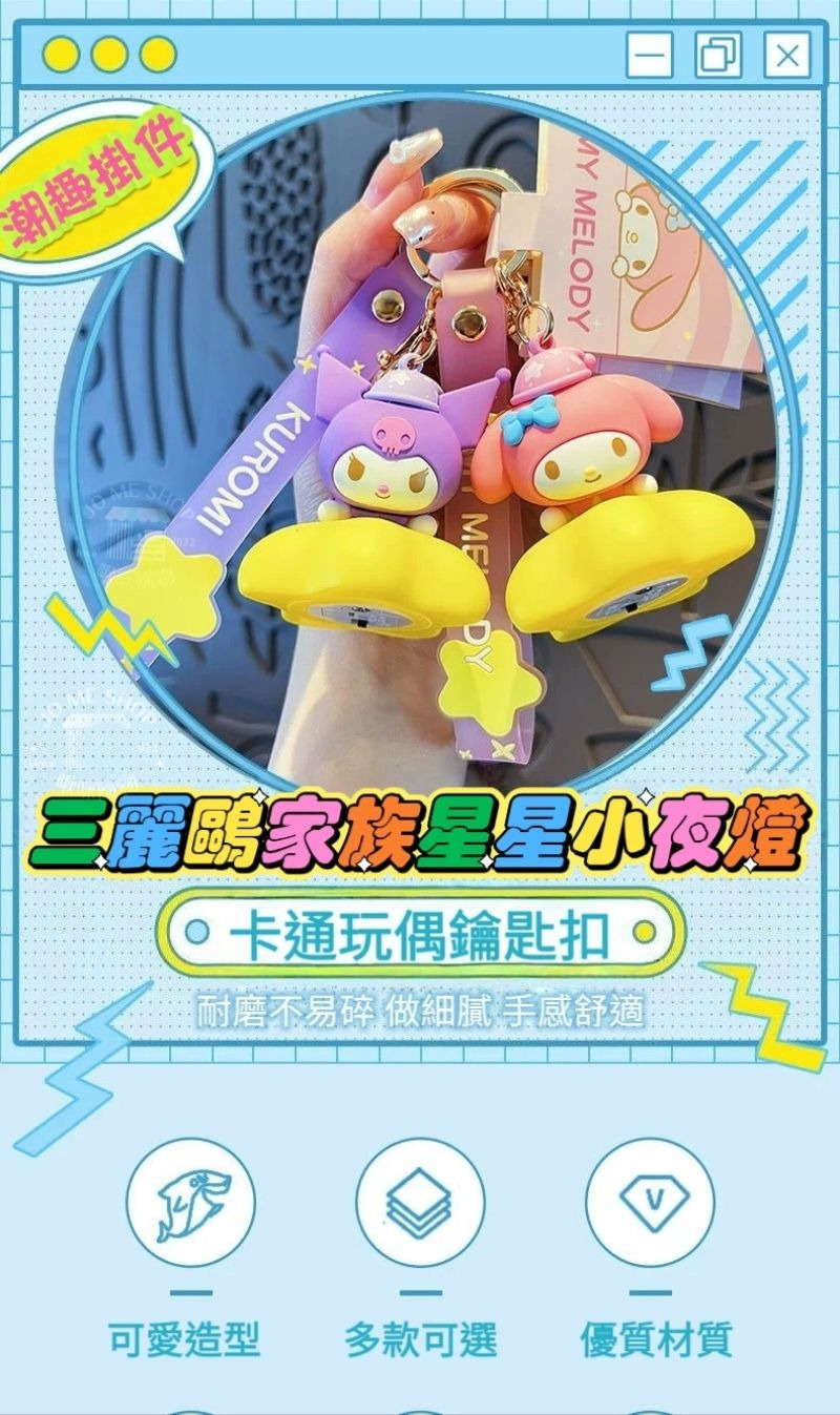 🪅現貨 禮物 正版 三麗鷗 庫洛米 kitty 美樂蒂 大耳狗 星星 小夜燈 鑰匙扣 可發光 書包 汽車 掛件