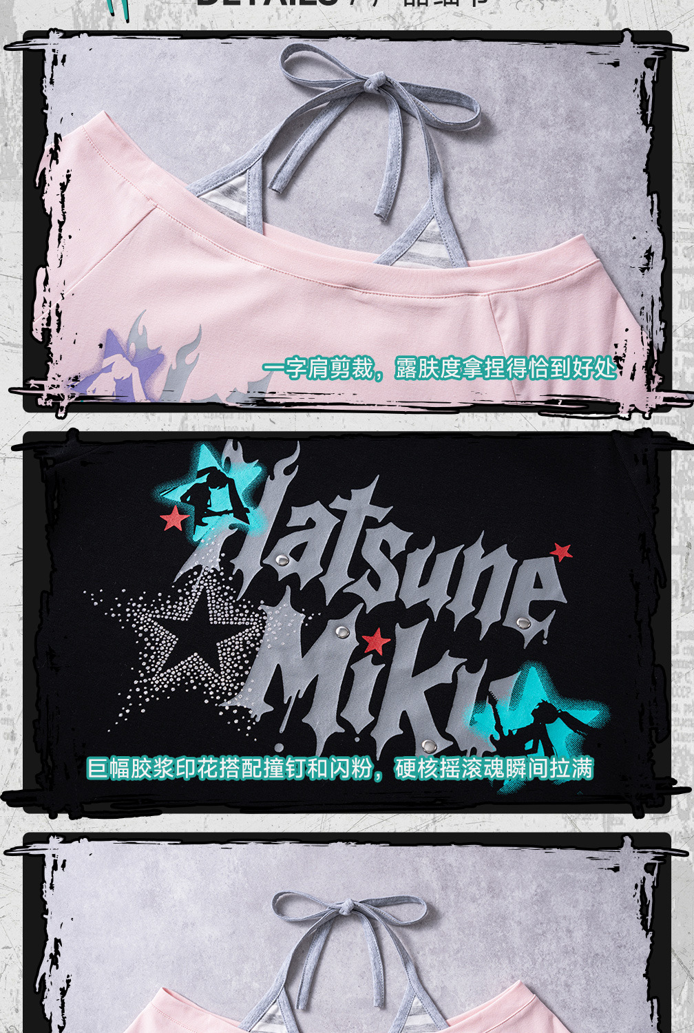 這款以「搖滾未來」為主題的初音未來 (Hatsune Miku) 正版授權 T 恤,將美式復古美學與現代辣妹風(Hot Girl Style)完美融合。