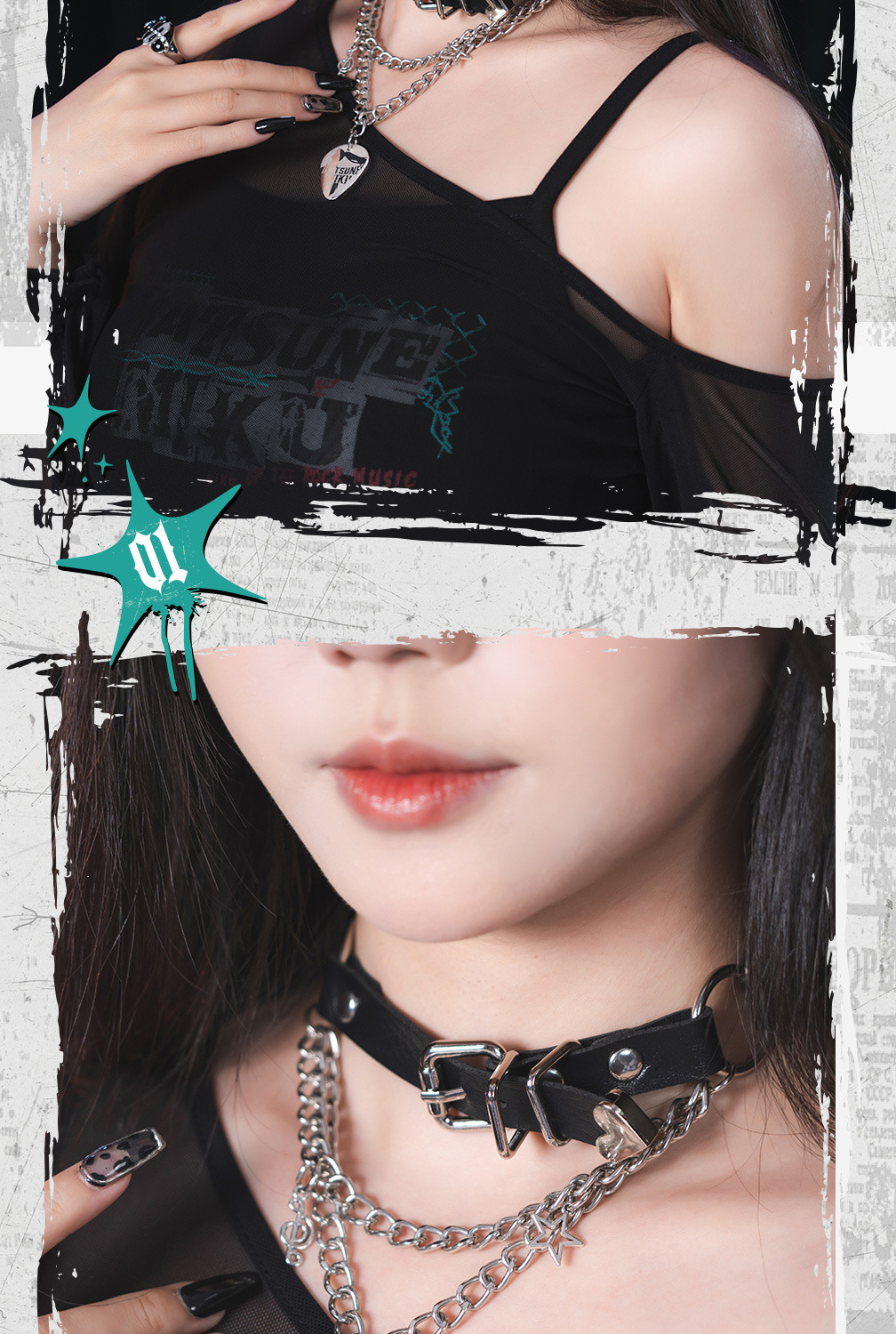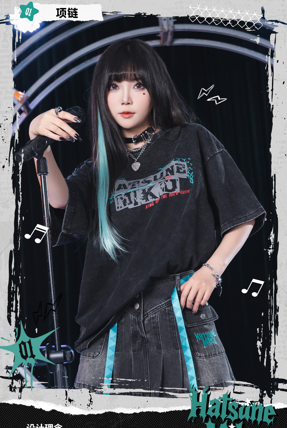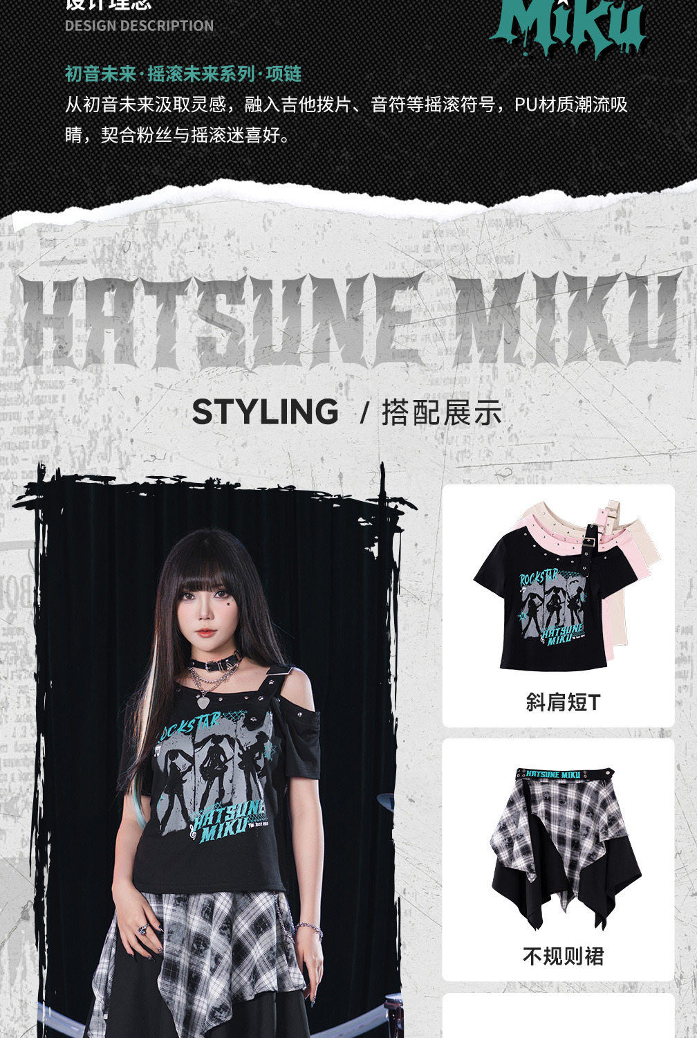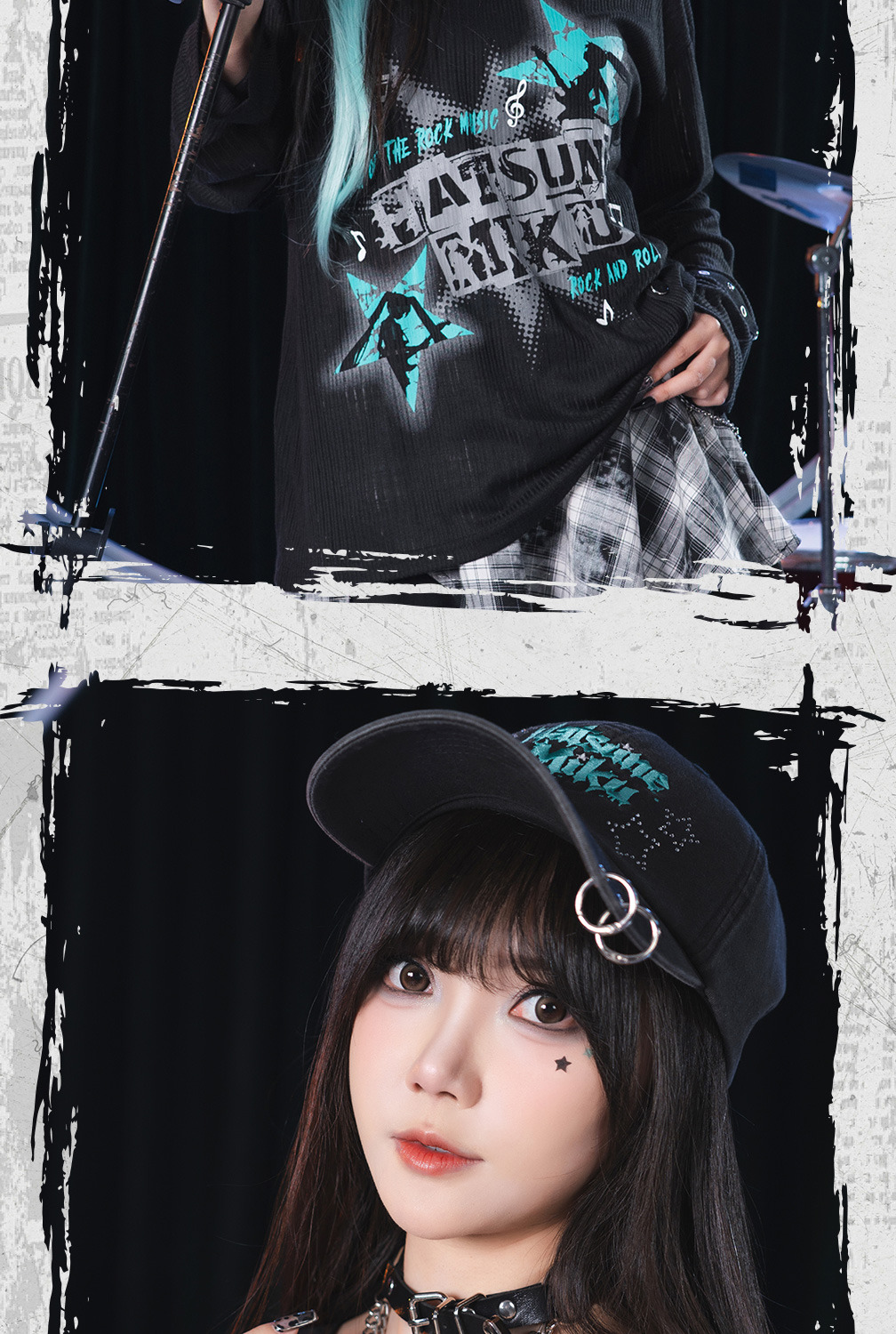 以「搖滾未來」為核心概念,將經典的蔥色元素與重金屬龐克風格完美融合。專為追求個性、喜愛甜酷辣妹風(Spicy Girl Style)的粉絲與穿搭達人設計。