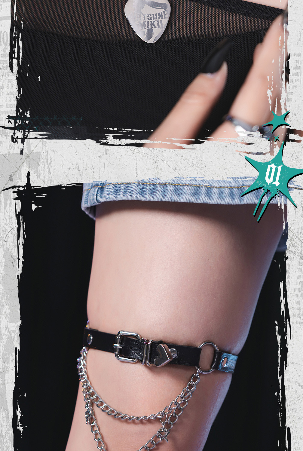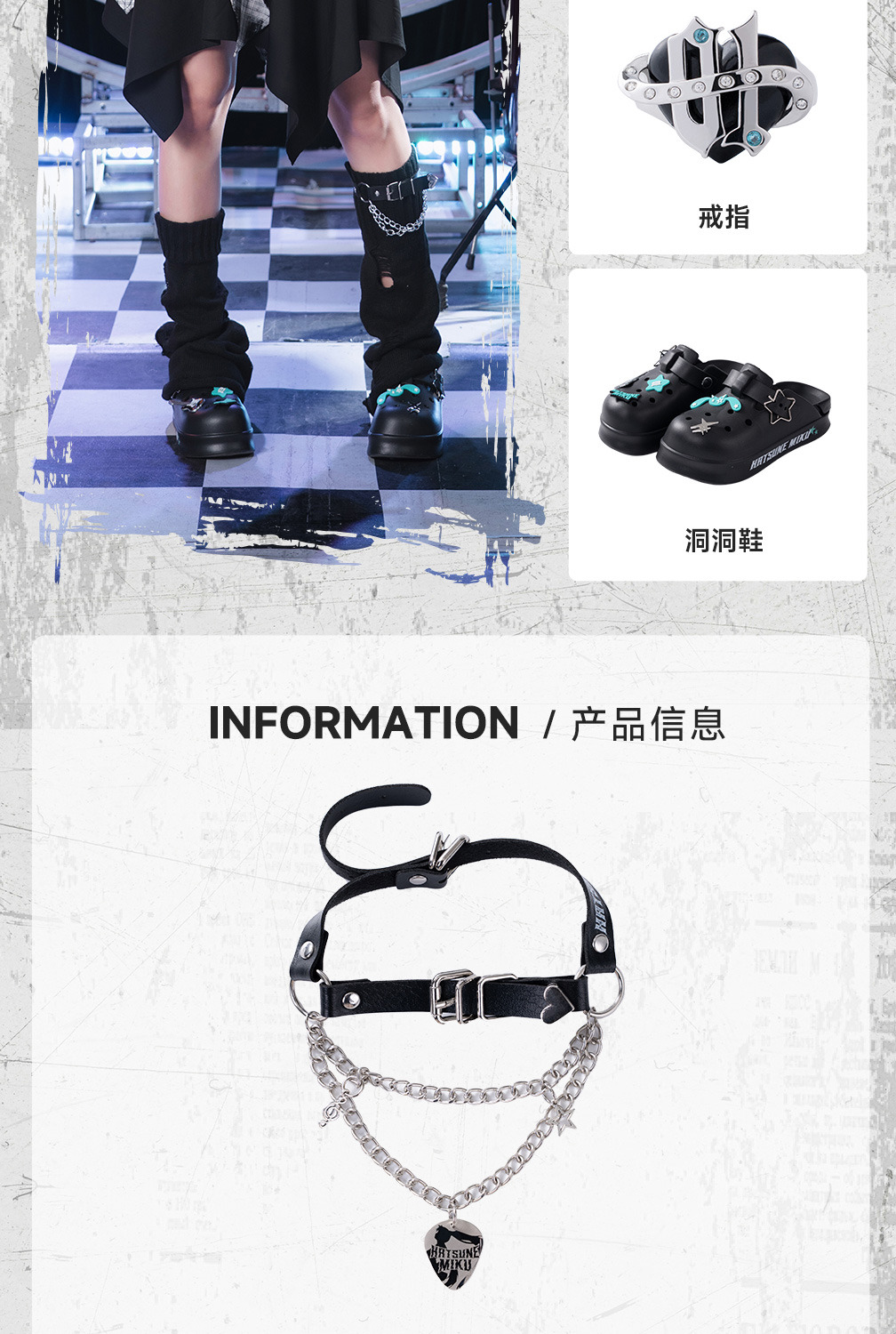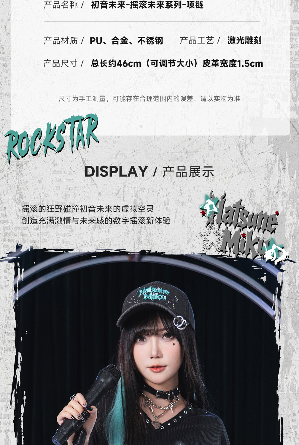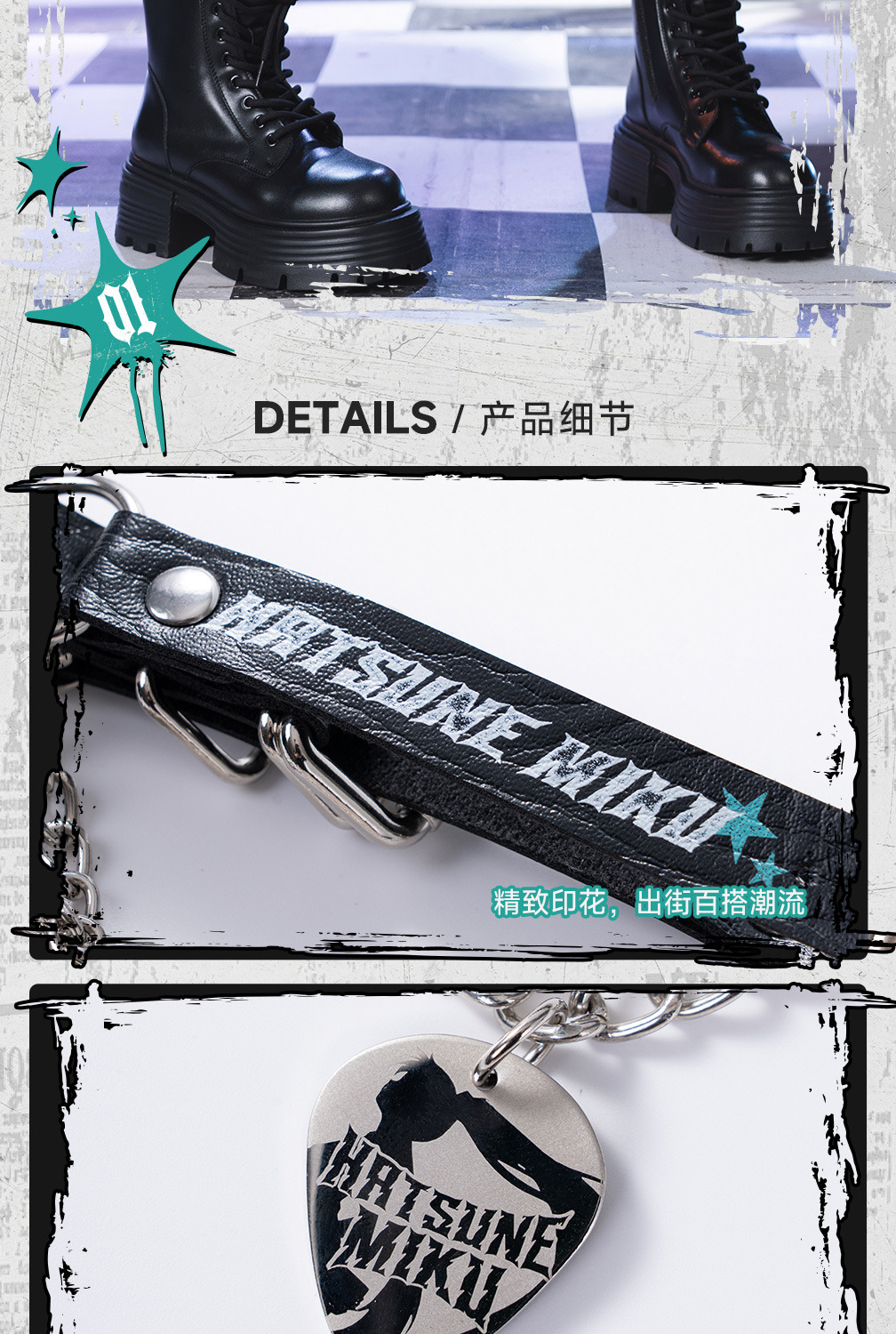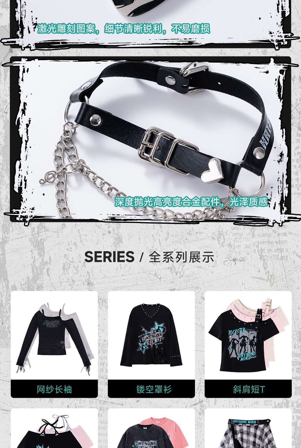 結合了工業風鎖鏈、金屬墜飾與 Miku 專屬圖騰,呈現出既硬核又可愛的視覺衝突感。