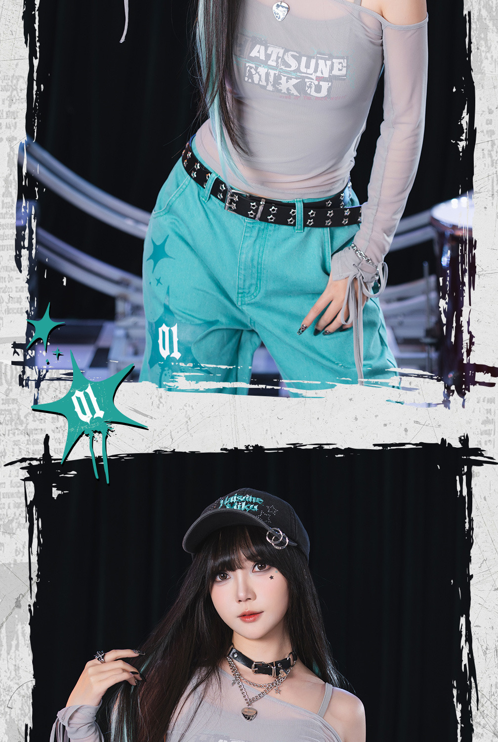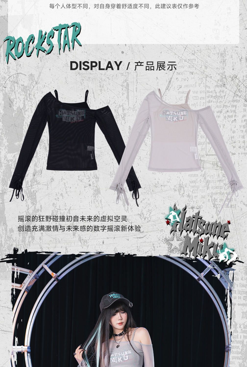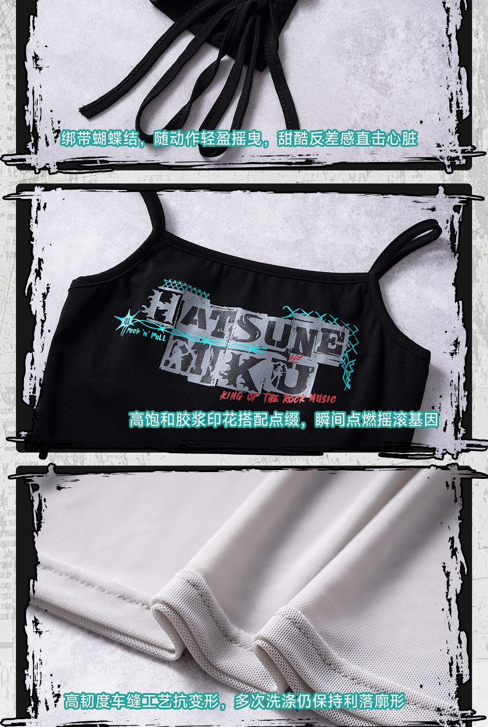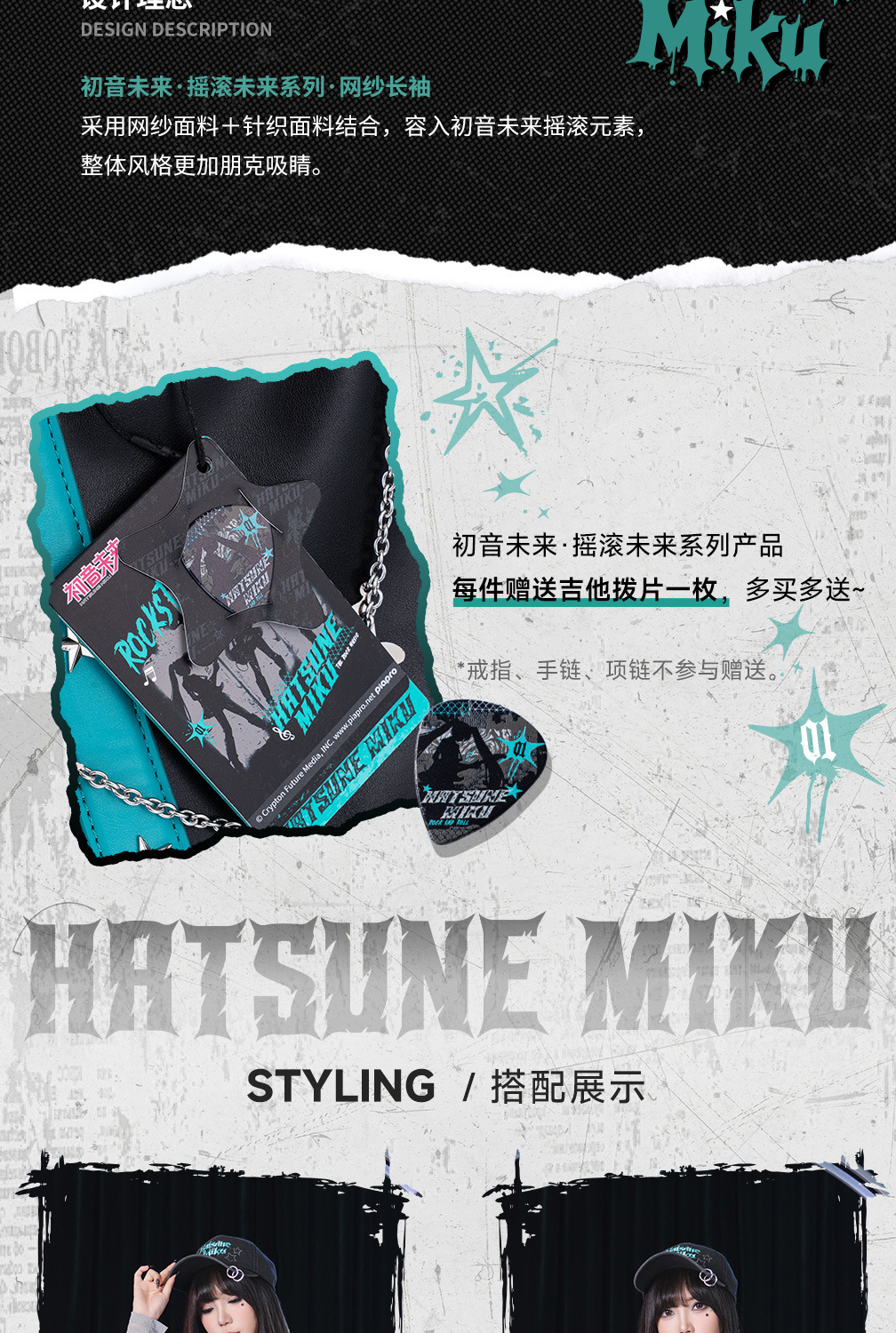 以「搖滾未來」為主題,將 Miku 的經典形象與搖滾元素完美結合,專為喜愛二次元文化的時尚者打造。