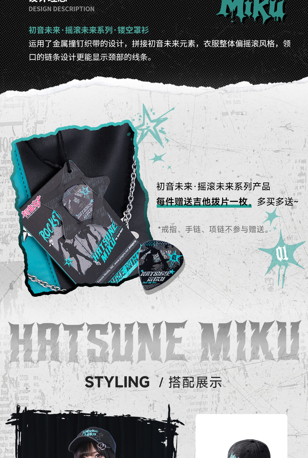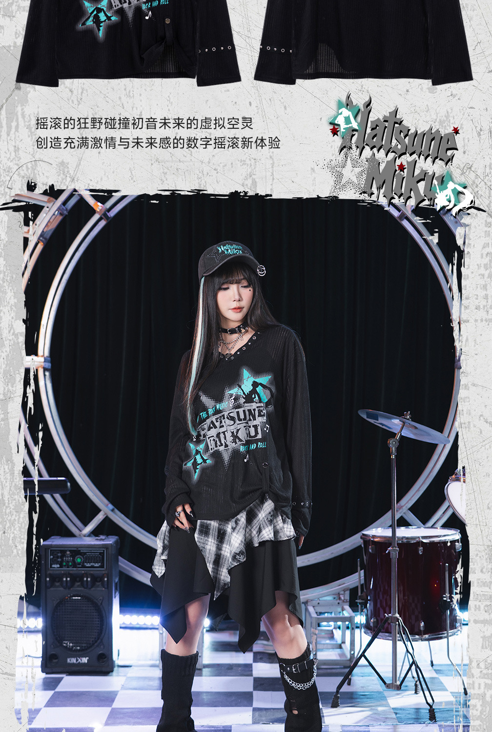 這不僅是一款罩衫,更是將 Miku 的數位魅力與搖滾元素完美融合的時尚單品。專為喜愛亞文化、街頭風格以及初音未來的粉絲設計。