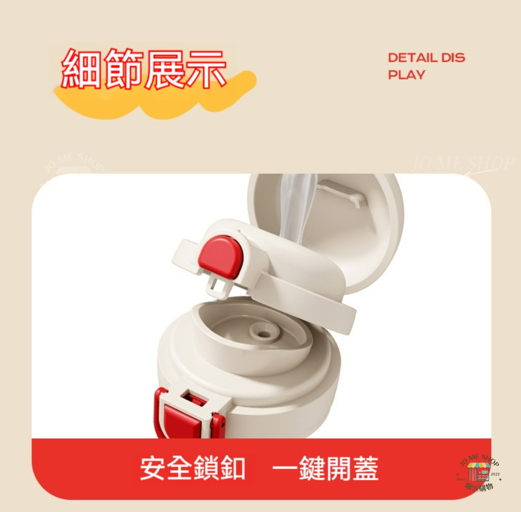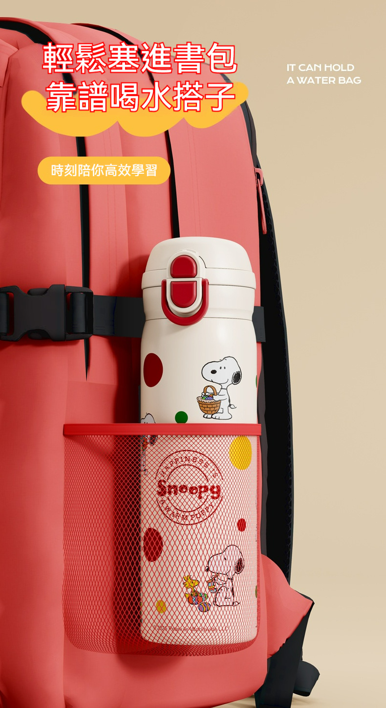 一鍵彈開設計,運動、通勤或上課時,單手即可輕鬆補水,防誤開鎖扣讓放包包也不怕漏。