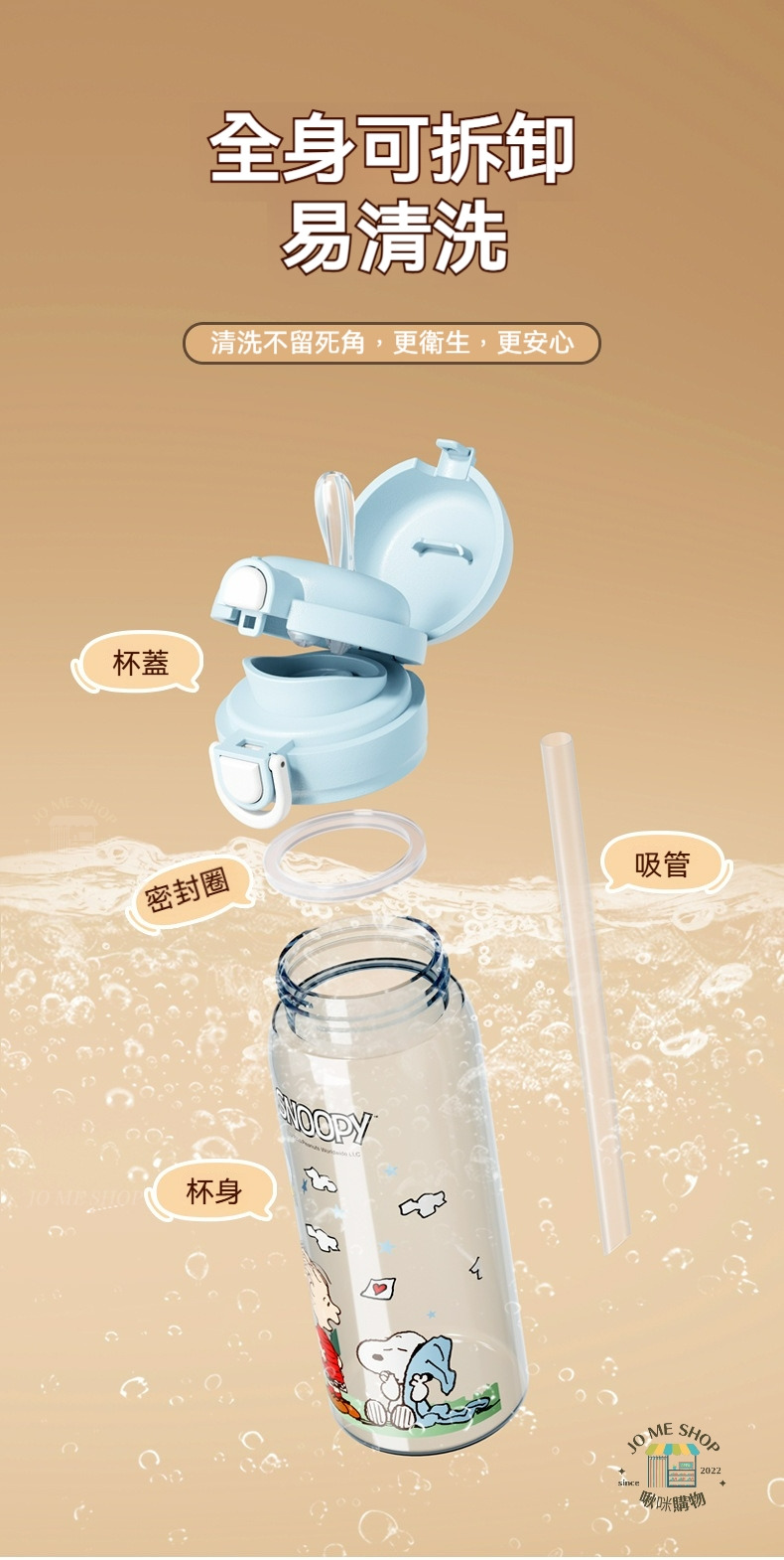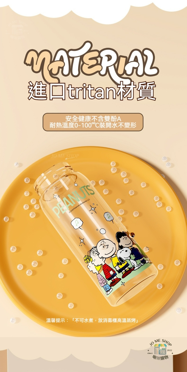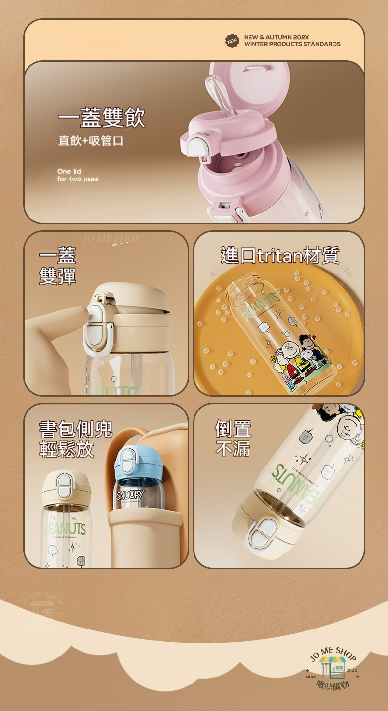 正版授權史努比(Snoopy)經典圖案,搭配通過認證的 Tritan 安全材質,不含雙酚 A (BPA Free),耐摔且耐用,是專為學童與幼兒設計的高品質水杯。
