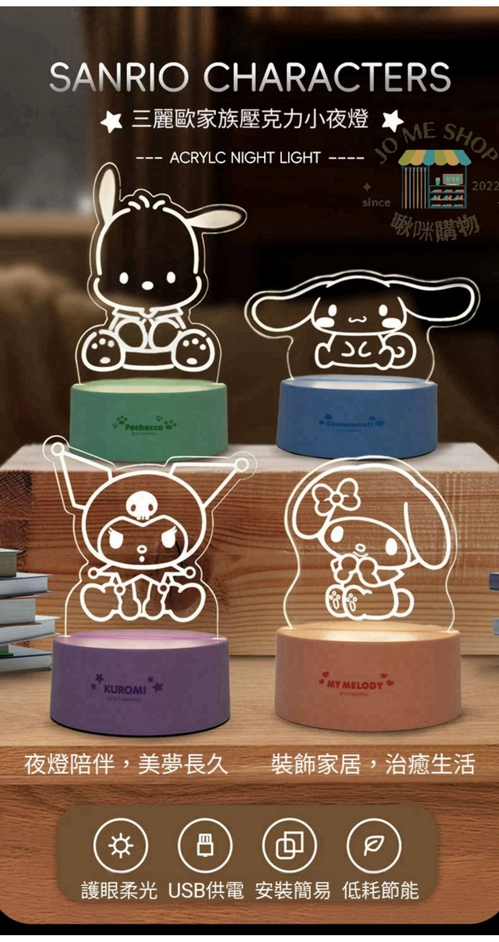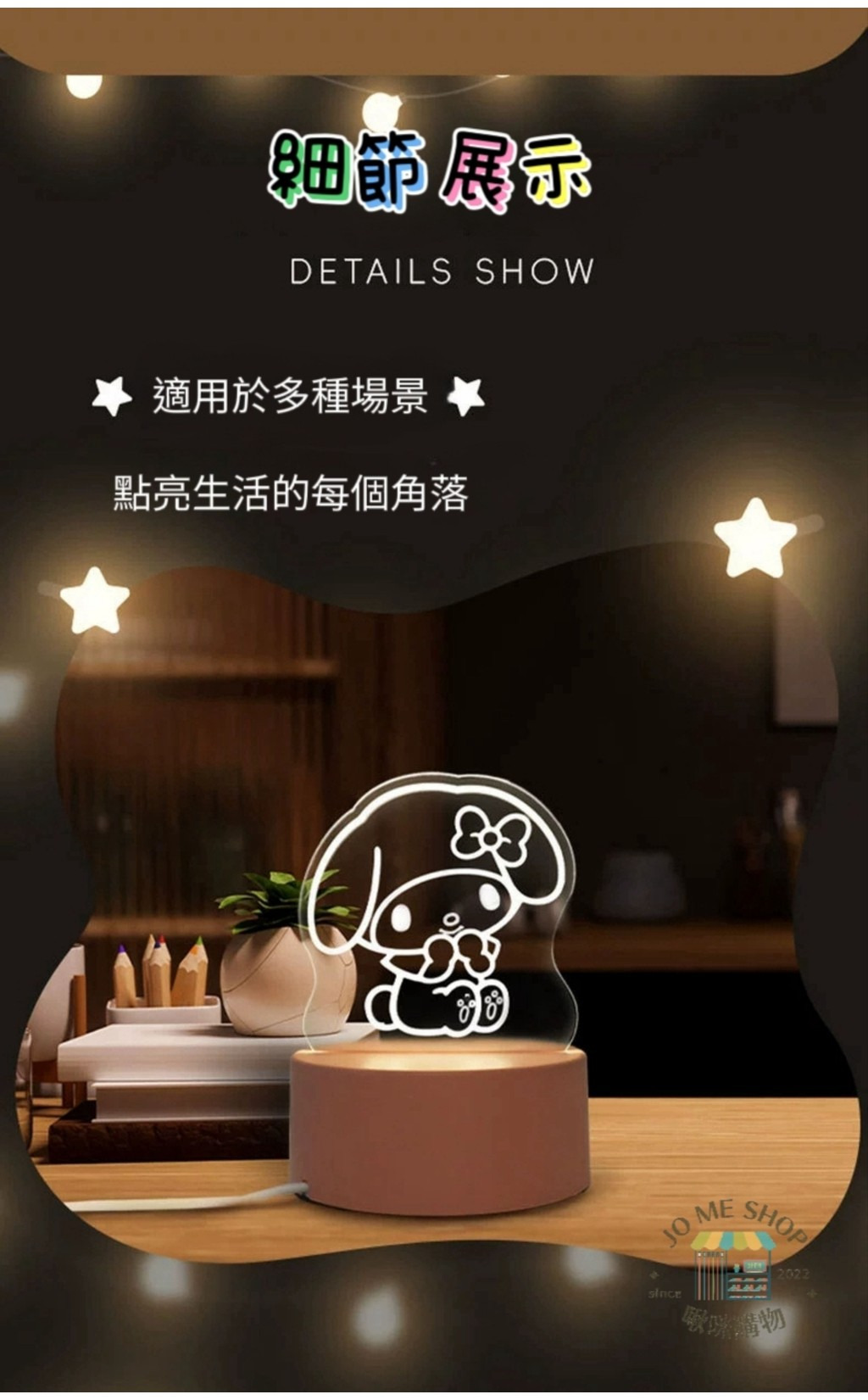 正版 三麗鷗家族 壓克力 小夜燈 擺件 酷洛米 帕恰狗 大耳狗 美樂蒂 裝飾